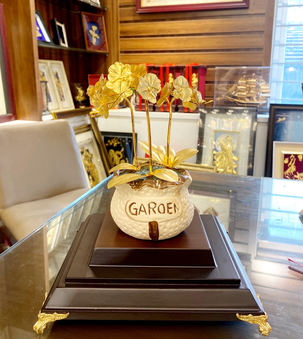 Chậu hoa lan dát vàng quà tặng ngày nhà giáo Việt Nam