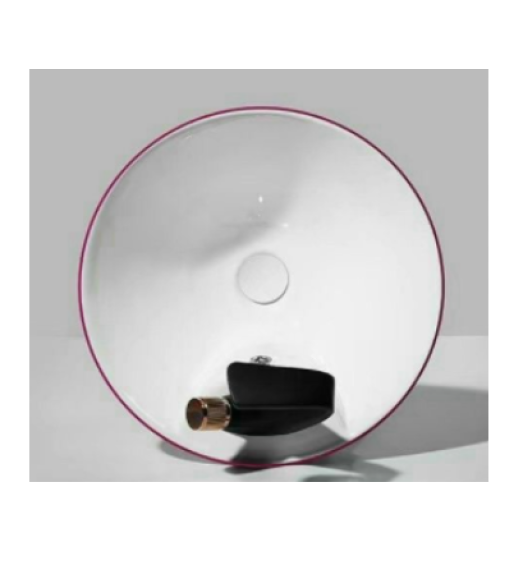 Lavabo Sứ Trụ Đứng Liền Khối Tròn Đen Viền Vàng TTCERA LBT13