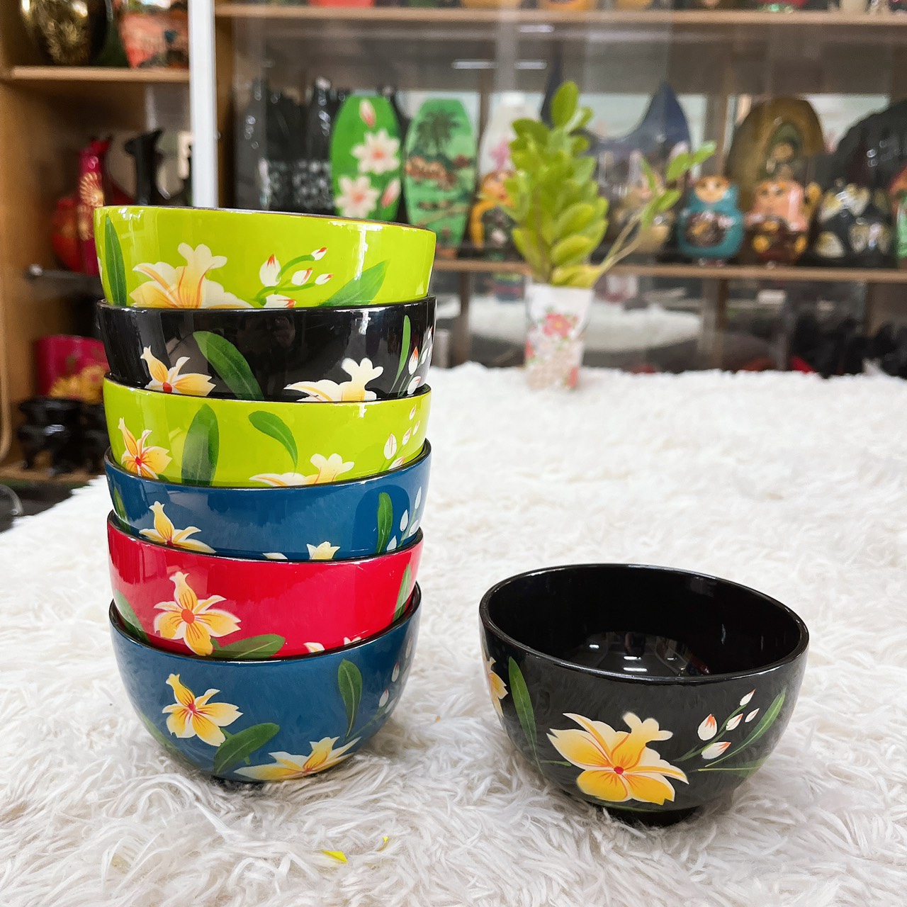 LƯU Ý: Shop giao mẫu ngẫu nhiên, khách hàng muốn lựa chọn mẫu vui lòng nhắn tin riêng cho shop nhé ạ.( Giá 1 cái chén) Kích thước: 11x7 cm Sản phẩm sơn mài được