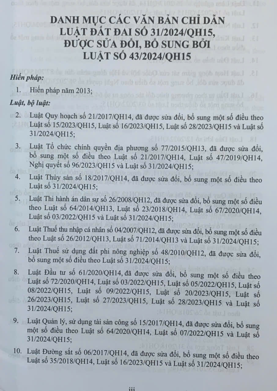 Chỉ dẫn tra cứu áp dụng luật đất đai số 31/2024/QH15 được sửa đổi, bổ sung bởi luật số 43/2024/QH15