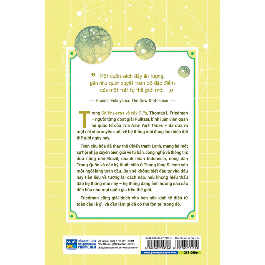 Trong cuốn Chiếc Lexus Và Cây Ô Liu, Thomas L. Friedman, người từng đoạt giải Pulitzer, bình luận viên quan hệ quốc tế của The New York Times, đưa ra một cái nhìn xuyên suốt về hệ thống quốc tế mới đang làm biến đổi tình hình thế giới ngày nay. Toàn cầu hóa đã thay thế Chiến tranh Lạnh, mang lại sự hội nhập về tư bản, công nghệ và thông tin xuyên qua biên giới quốc gia - hội tụ nông dân Brazil, giới doanh nhân Indonesia, dân làng Trung Quốc và kỹ thuật viên ở Thung lũng Silicon vào một ngôi làng toàn cầu chung. Bạn không thể hiểu bản tin buổi sáng, biết nơi nào để đầu tư hay tiên liệu về tương lai nếu bạn không hiểu thấu đáo hệ thống mới này - đang ảnh hưởng sâu sắc đến hầu như mọi quốc gia trên thế giới ngày nay. Friedman giải thích cho bạn nền kinh tế điện tử toàn cầu này là gì và cần làm gì để con người có thể tồn tại trong đó.