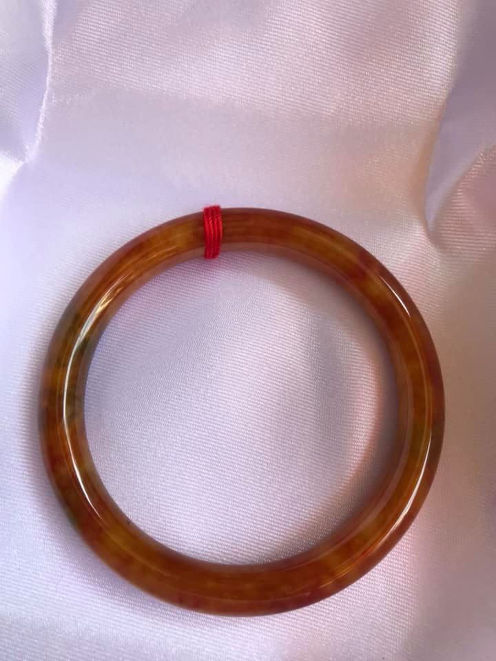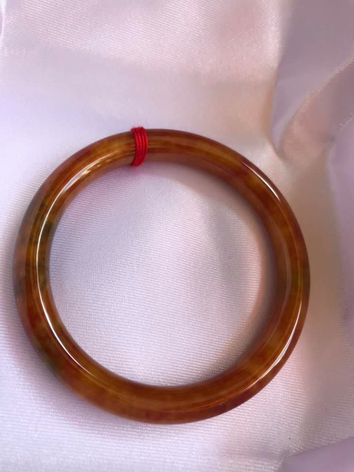 💕💦💕Vòng cẩm thạch Tứ Quý đẹp 51mm xdầy 7,5mm Màu Cam Bông Xíu Xanh Nhẹ bóng đẹp lắm 50kg-56kg480k
