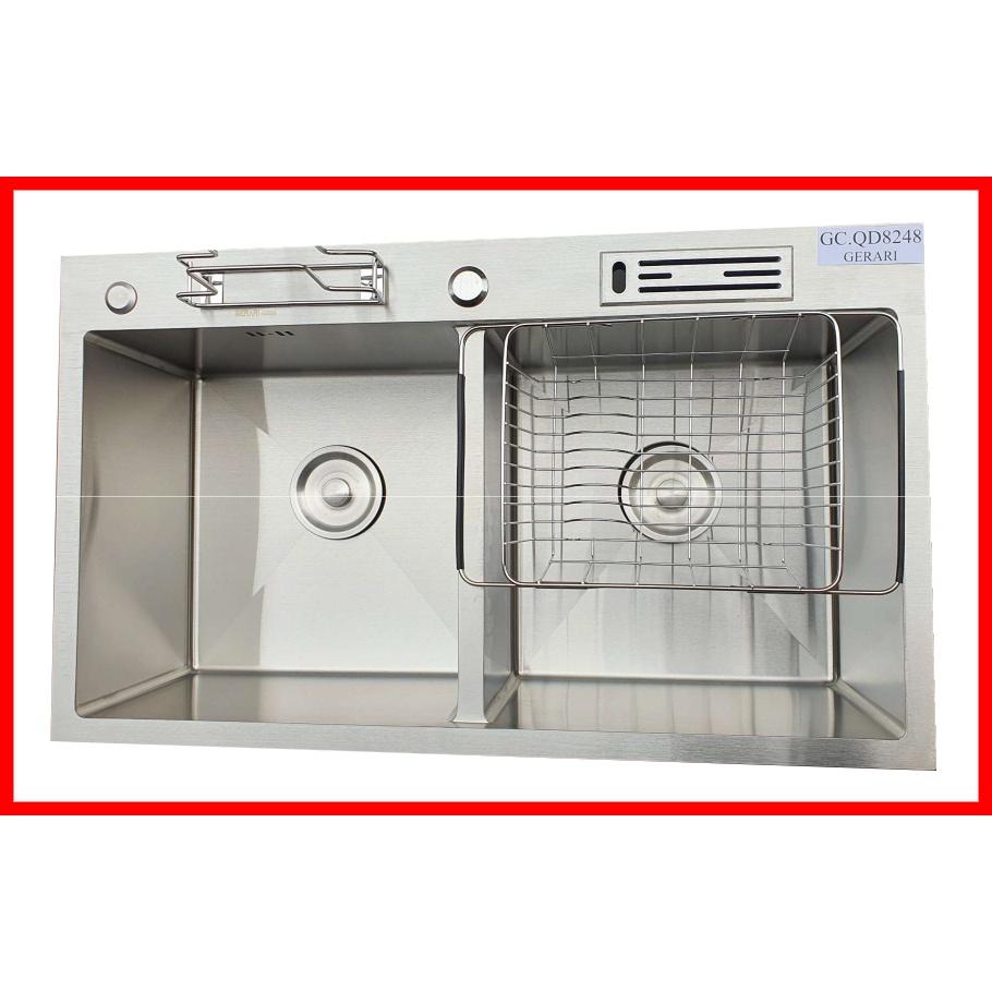 Thông tin chi tiết Chậu rửa 2 hố lệch phụ kiện đi kèm chât liệu Inox 304 cao cấp GERARI mã 8248
