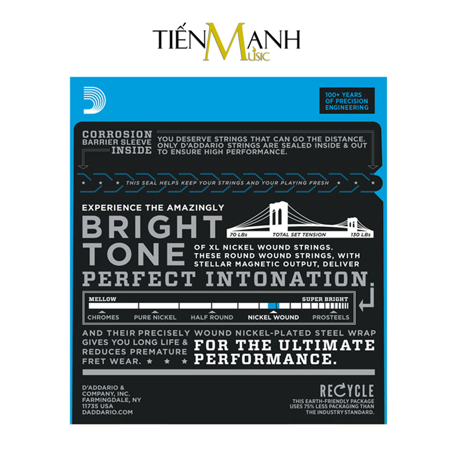- Bộ 4 Dây Đàn Guitar Bass D'Addario EXL170 được sản xuất bằng thép mạ nickel với tông màu sáng đặc biệt và ngữ điệu xuất sắc. Âm bass thể hiện được hầu hết tất cả các thể