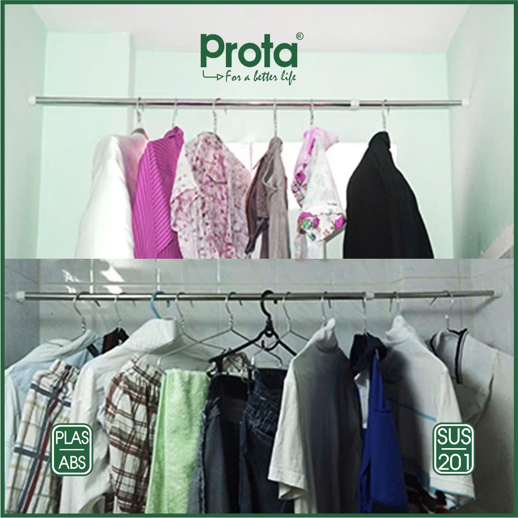 -Thanh treo tường inox đa năng không cần khoan tường ống 16mm Prota được làm bằng inox cứng cáp, bền bỉ có thể dùng để treo quần áo, các vật dụng trong nhà cũng như làm giá đỡ gác đồ vật rất tiện lợi.