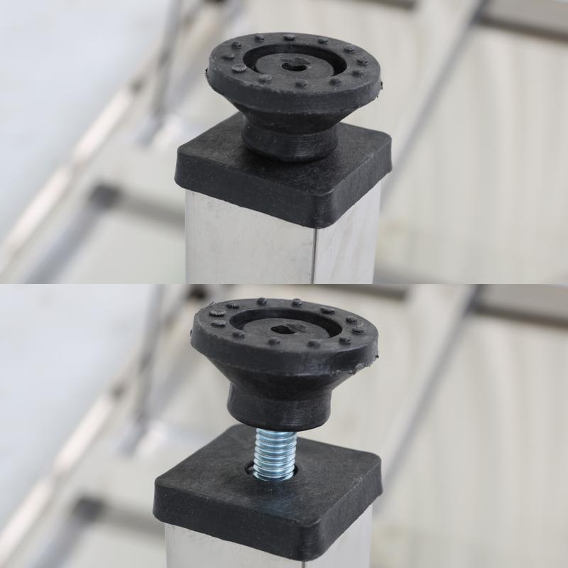 - Chân bàn được làm từ ống Inox 201 hộp vuông có kích thước 25-30 mm, qua quy trình cắt, khoan, và đục hiện đại, giúp bàn có độ bền cao và không bị cong vênh hay nứt gãy khi chịu trọng lượng lớn. Bàn còn được trang bị 4 nút chân bằng nhựa, giúp chống trượt khi đặt trên các bề mặt phẳng, đảm bảo tính ổn định và an toàn khi sử dụng.