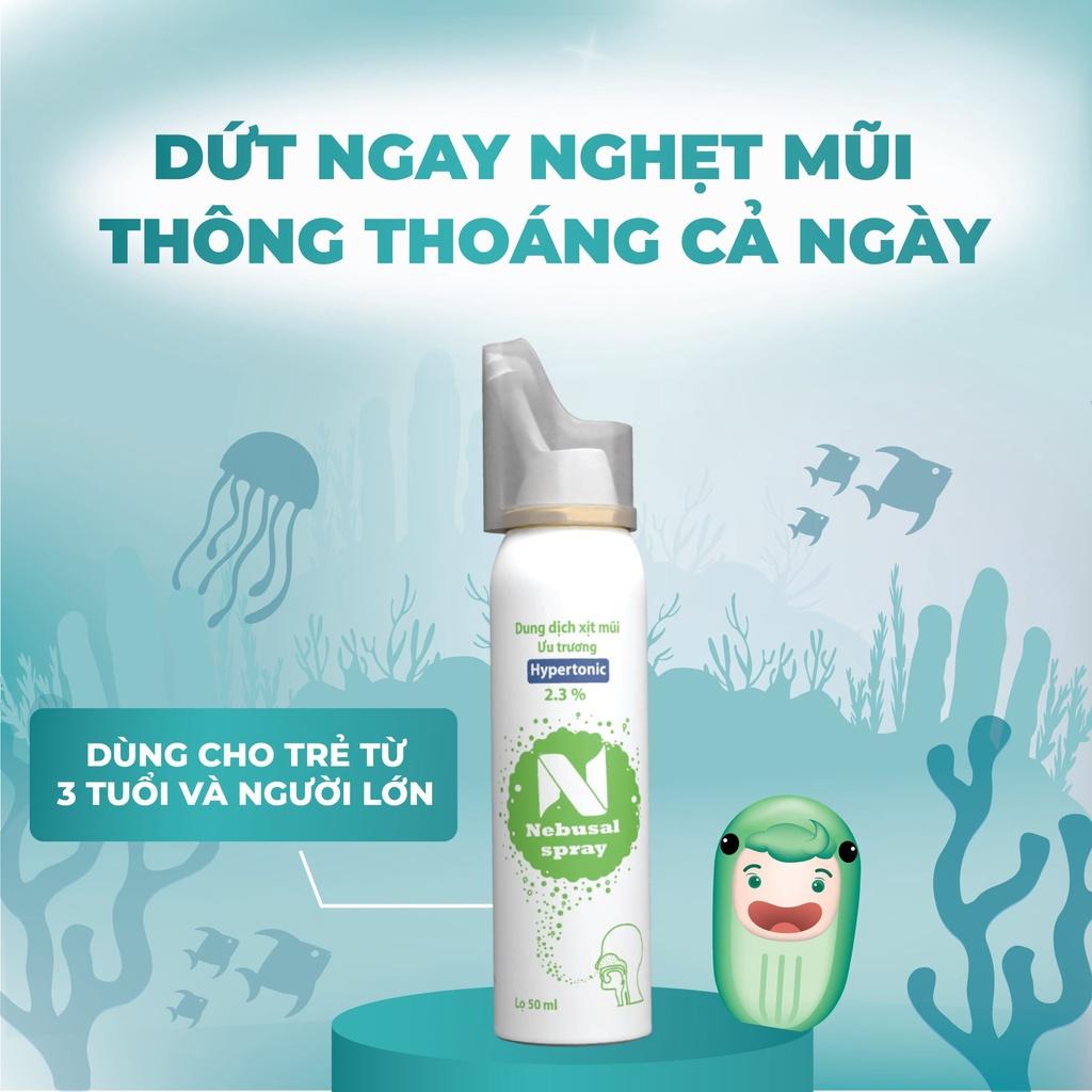 Xịt mũi Nebusal Spray là xịt mũi dung dịch nước muối biển hàng đầu tại Việt Nam, được sản xuất theo dây chuyền đạt chuẩn GMP-WHO, an toàn với trẻ nhỏ và cả người lớn