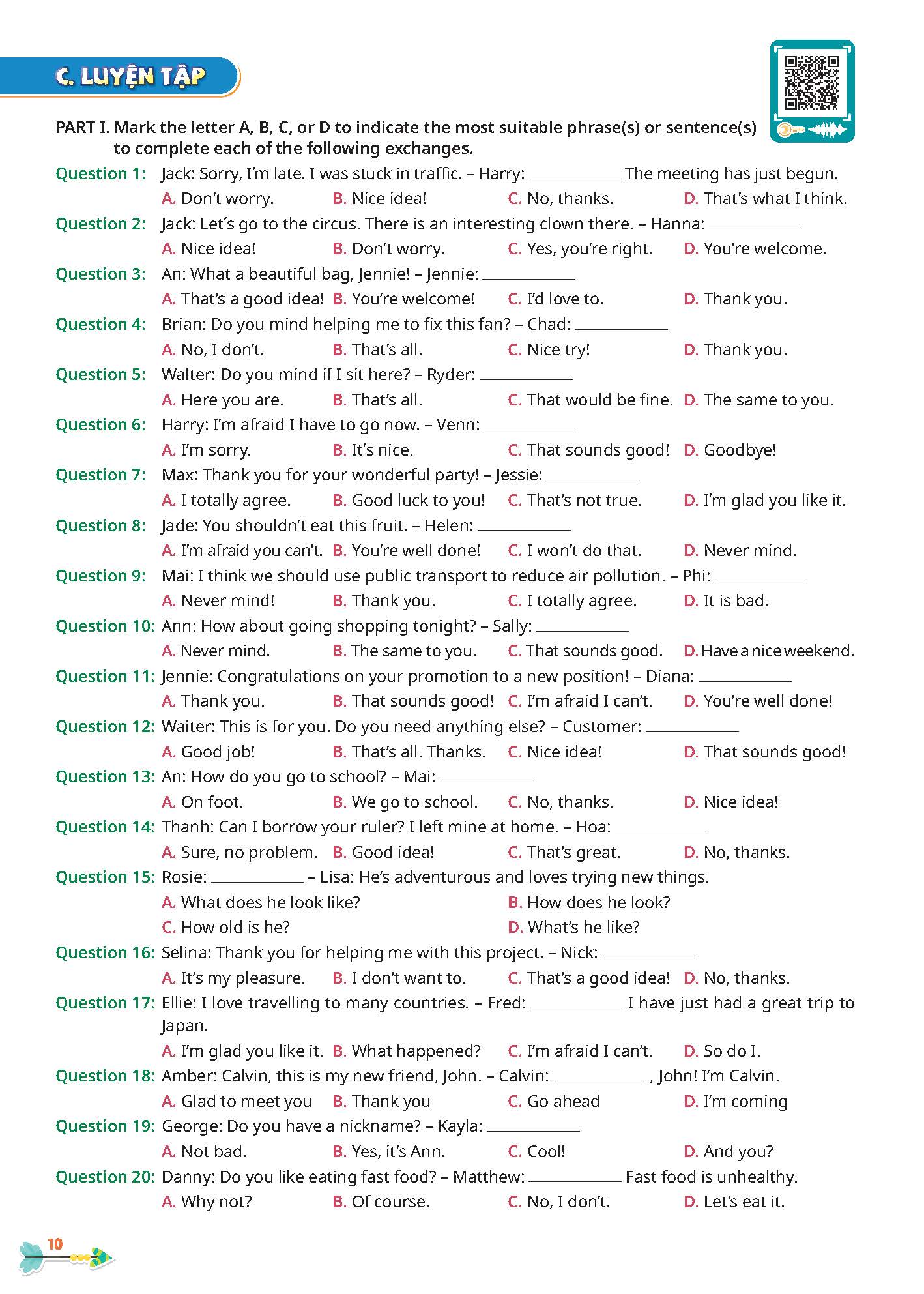 Chinh phục kì thi Tiếng Anh - Tốt nghiệp THPT tập 1 được biên soạn nhằm trang bị cho các em học sinh nguồn tài nguyên bổ trợ phong phú theo chương trình học và