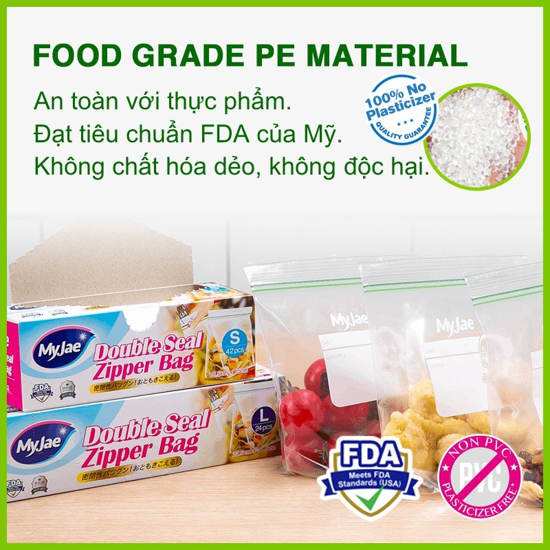 Chất liệu PE an toàn thực phẩm, đạt tiêu chuẩn FDA của Mỹ, không chất hóa dẻo, không độc hại.