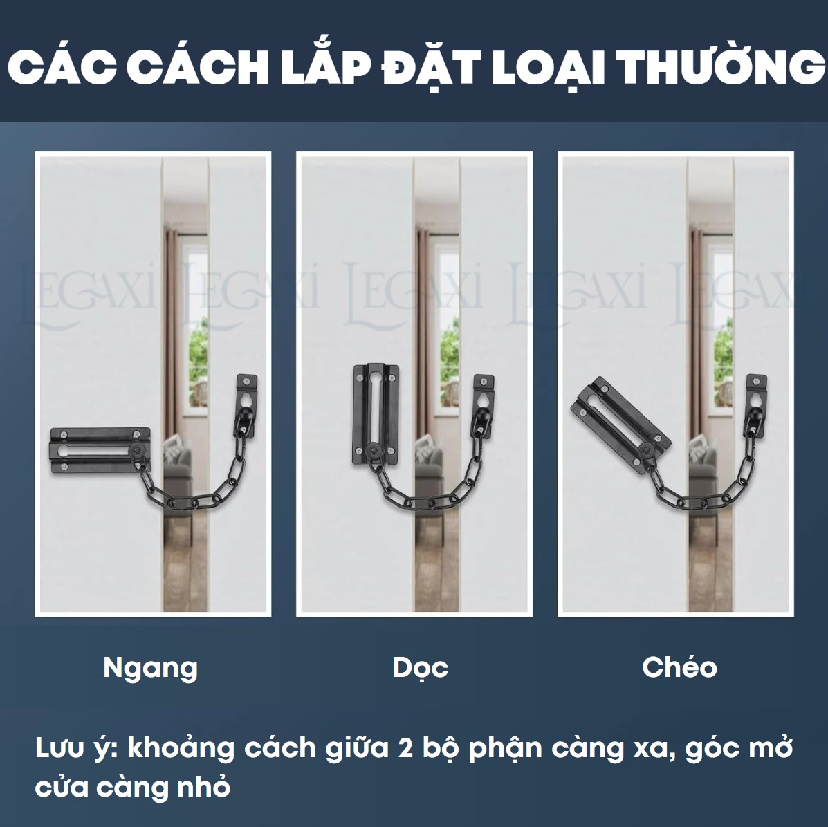 - Phù hợp với mọi loại cửa như Cửa Gỗ, Cửa Nhôm, Cửa Nhựa,... 🎯 PHÙ HỢP SỬ DỤNG CHO: ✔️ Cửa nhà riêng – phòng ngủ ✔️ Chung cư – nhà trọ – cửa hàng ✔️ Phòng làm việc – homestay ✔️ Khách sạn 🔰HƯỚNG DẪN SỬ DỤNG ✨LOẠI THƯỜNG Bước 1: Ước chừng vị trí cần lắp. Bước 2: Vặn xích vào 2 bên cửa, đặt thanh dài hơn nằm ngang để khóa chặt hơn. Lưu ý: cửa gỗ có thể khoan trực tiếp. Bước 3: Gắn khóa từ đầu có lỗ tròn lên. Bước 4: Kiểm tra khóa và hoàn thành. ✨LOẠI CAO CẤP Bước 1: Dùng tua vít hoặc máy khoan gắn phần có chốt khoá vào cửa Bước 2: Gài phần có dây xích vào chốt cửa Lưu ý: cửa gỗ có thể khoan trực tiếp. Bước 3: Dùng tua vít hoặc khoan cố định phần dây xích vào cửa Bước 4: Chốt khoá và gắn dây xích để sử dụng (Chốt khoá an toàn chỉ di chuyển khi nút được nhất lên)