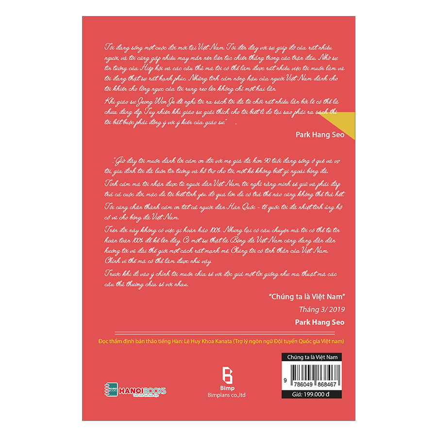 Nếu muốn biết vì sao Huấn luyện viên Park có thể tạo nên điều kì diệu, hay muốn hiểu rõ hơn về con người vĩ đại ấy cũng như có cái nhìn toàn cảnh về tương lai của bóng đá Việt Nam, bạn không thể bỏ qua cuốn sách này - cuốn sách duy nhất, cho đến nay, được đồng thời xuất bản ở cả Việt Nam và Hàn Quốc về Huấn luyện viên Park Hang-seo.