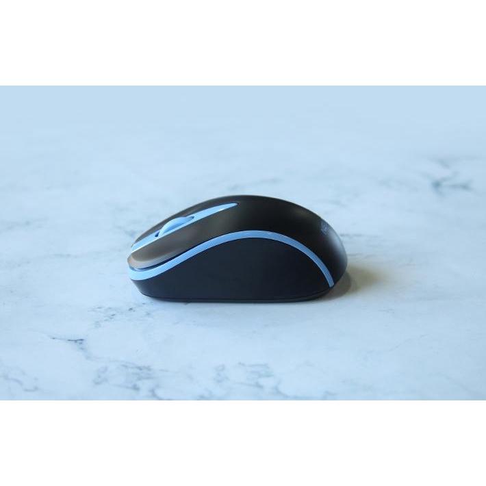 Không quá rườm rà và hầm hố, chuột không dây mang màu đen chủ đạo kết hợp với các đường viền và phần con lăn chuột được sơn màu xanh nhẹ nhàng, cực bắt mắt và thanh lịch. Sản phẩm được cấu tạo và hoàn thiện từ chất liệu nhựa ABS mang lại độ bền cứng rất cao. Chất liệu này giúp hạn chế trầy xước, nứt vỡ khi va đập đồng thời cho trọng lượng nhẹ, dễ dàng mang theo khi đi ra ngoài.