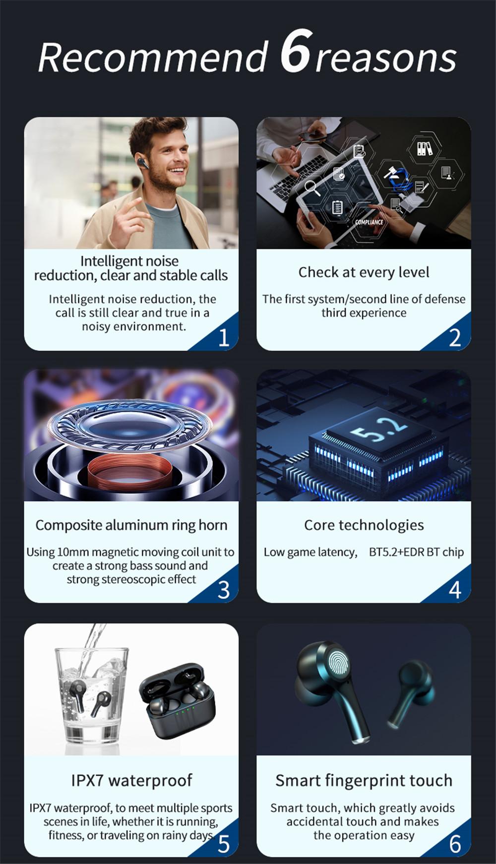 Chức năng tai nghe: Hiệu ứng giảm tiếng ồn chủ động / độ trong suốt của ANC (nhấn và giữ trong 3 giây để chuyển đổi độ trong suốt / giảm tiếng ồn) Giảm tiếng ồn ANC, và nút có thể được chuyển đổi và giảm tiếng ồn micrô kép khi nói chuyện với ENC.