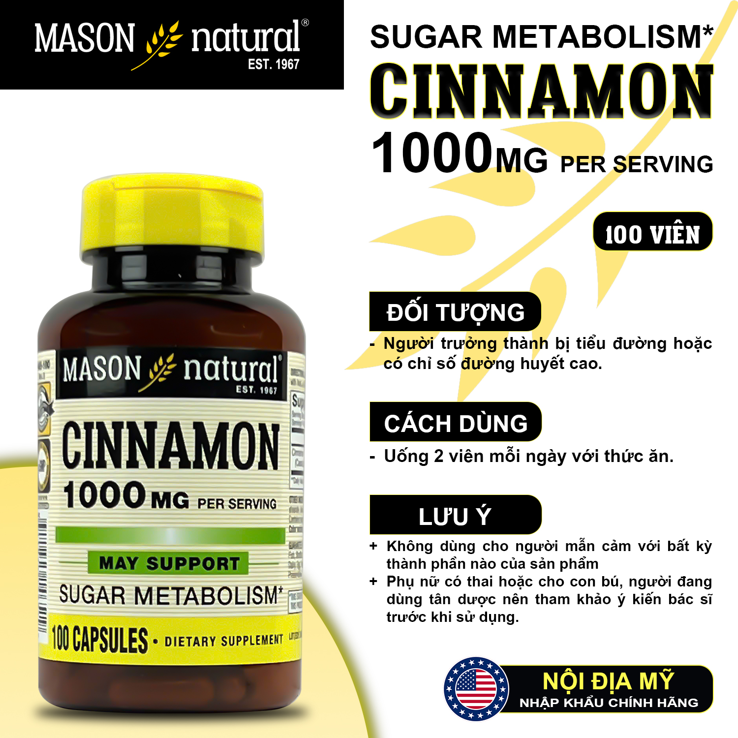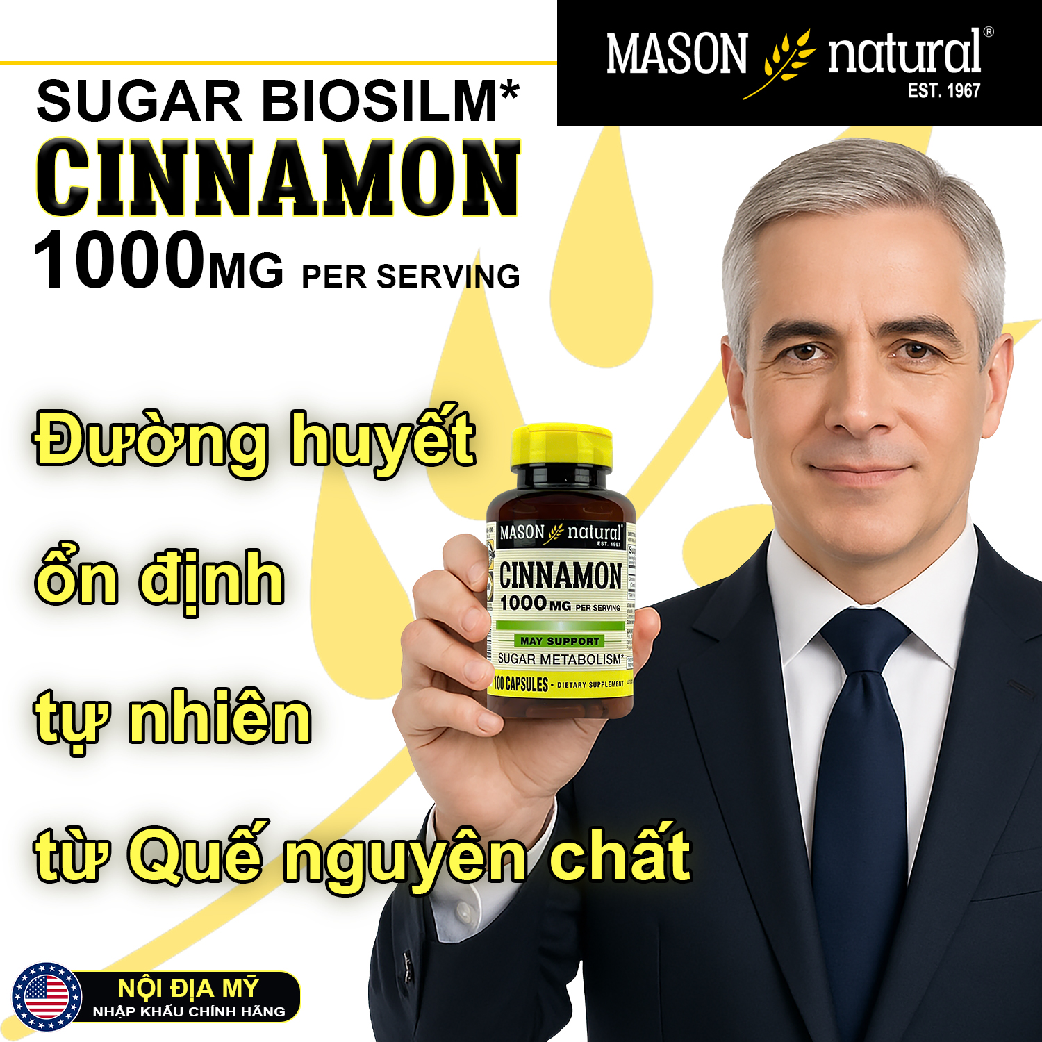 MASON CINNAMON 1000MG - ỔN ĐỊNH ĐƯỜNG HUYẾT TỰ NHIÊN - SỐNG KHỎE MỖI NGÀY!