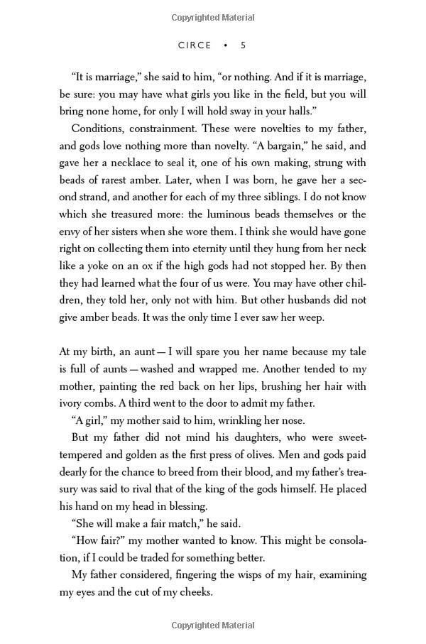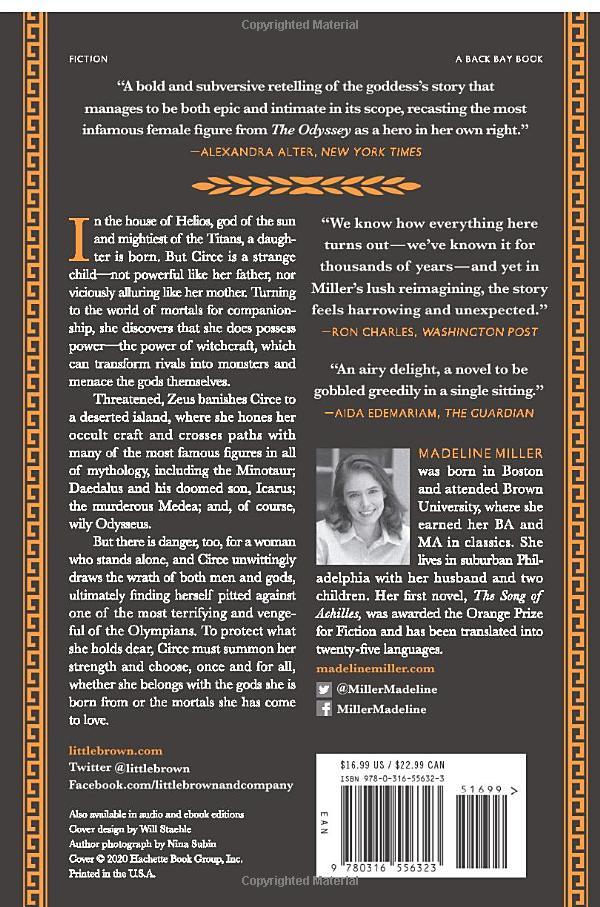 Scorned, rejected and at last exiled from her father's house for her dark gifts, Circe arrives on the remote island of Aiaia with nothing but her wits and magic to help her. But there is danger for a solitary woman in the world, and Circe's independence and strange powers draw the wrath of men and gods alike. To protect what she holds dear, Circe must decide whether she belongs with the deities she is born from, or the mortals she has come to love.