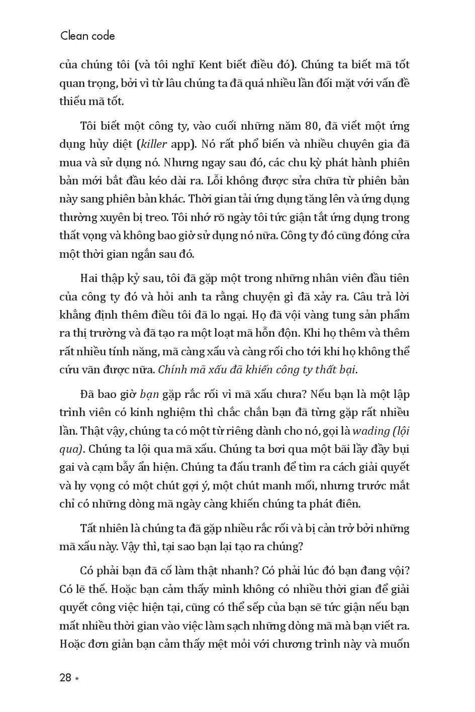 Cuốn sách được nhiều lập trình viên đánh giá là quyển sách giá trị nhất mà họ từng đọc trong sự nghiệp của mình. Cuốn sách hướng dẫn cách để viết những đoạn mã có thể hoạt động tốt, cũng như truyền tải được ý định của người viết nên chúng.