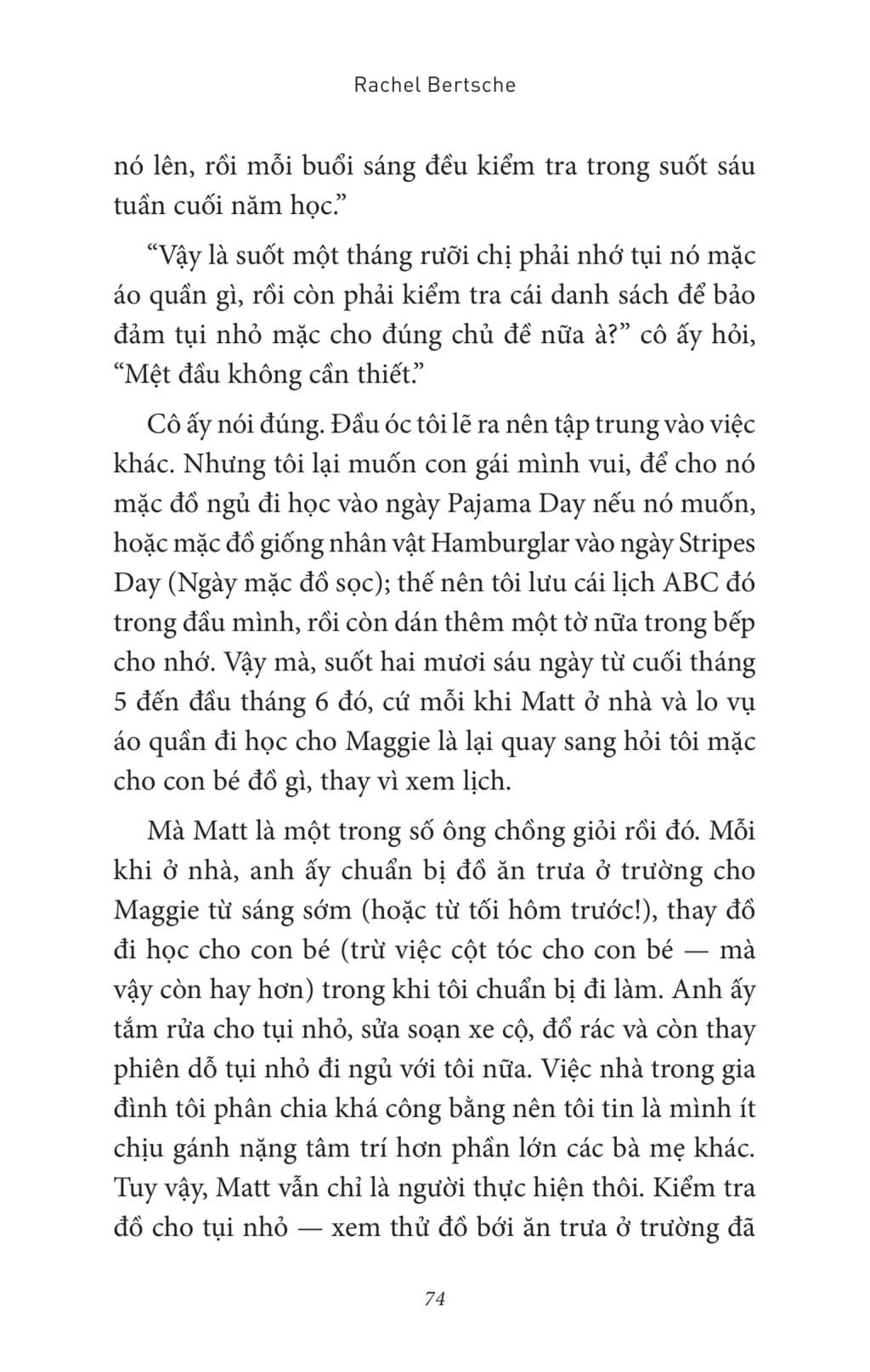 Mua tại TiktokCuốn sách nói về cách các bậc cha mẹ hiện đại sử dụng thời gian khi không bận chăm con hay bận làm việc. Phần Một (“Thời gian đâu hết rồi?”) là phần phân tích sâu lý do tại sao các bậc cha mẹ lại cho rằng họ không có được thời gian cho bản thân m.ình và tại sao mất đi thời gian giải trí lại là chuyện nghiêm trọng. Phần này nghiên cứu thực tế các bậc cha mẹ đang sử dụng thời gian vào những việc gì, khuyến khích họ nên dành thời gian cho bản thân và đưa ra những giải pháp thiết thực.
