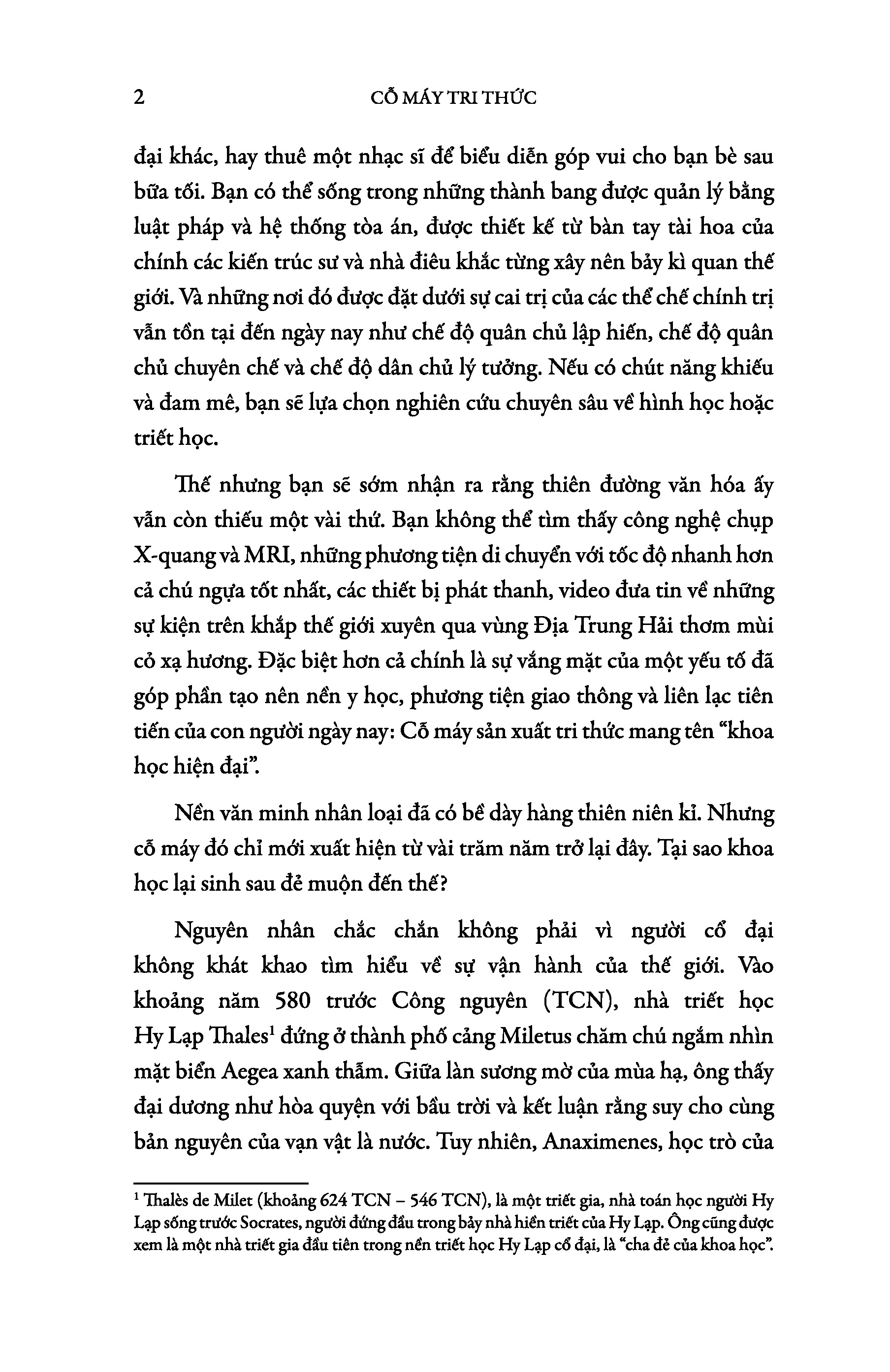 Cuốn sách bạn đang cầm trên tay sẽ kể lại câu chuyện về lịch sử khoa học một cách đầy đủ hơn, dẫn dắt bạn khám phá lại các vùng đất và con người vĩ đại, trong một hành trình đầy mê hoặc xuyên suốt một thiên niên kỷ, khảo cứu nguồn gốc văn bẳn thiên văn học y học toán học cổ đồ sộ, cách thức tri thức cổ đại được bảo tồn và truyền bá từ thế giới Hy Lạp-La Mã đến thời kỳ Phục Hưng ở châu Âu. Ta sẽ theo chân Euclid, Galen và Ptolemy từ Alexandria thé kỷ thứ 6 đến Baghdad thế kỷ thứ 9, từ Cordoba Hồi giáo đến Toledo Kito giáo, từ trường y của Salerno đến Palermo, thủ phủ của sự pha trộn văn hóa sôi động của Sicily, và cuối cùng đến Venice, nơi các máy in của thành ơhoos thương mại lớn này sẽ giúp hình học của Euclid, hệ thống các vì sao của Prolemy và khối lượng lớn các tác phẩm về y học của Galen được truyền bá rộng rãi hơn nữa. Khi lần theo những sợi chỉ đỏ tri thức mong manh ấy từ thế kỷ này sang thế kỷ khác, từ đông sang tây và từ bắc xuống nam, một bản đồ tri thức mới sẽ mở ra mạng lưới két nối giữa thế giới Hồi giáo và Kito giáo, những kết nối đã góp phần bảo tồn và chuyển đổi thiên văn học, toán học và y học từ đầu thời Trung đại đến thời Phục hung. Ta sẽ thấy di sản tri thức của nhân loại vĩ đại đến mức nào nhờ những đóng góp thầm lặng của biết bao người. Bản đồ tri thức không đơn thuần chỉ là một cuốn sách về lịch sử tri thức, các vùng đất và con người, mà còn là một lời nhắc nhở về tầm quan trọng của việc bảo tồn và chia sẻ kiên thức qua các thế hệ và nền văn hóa.
