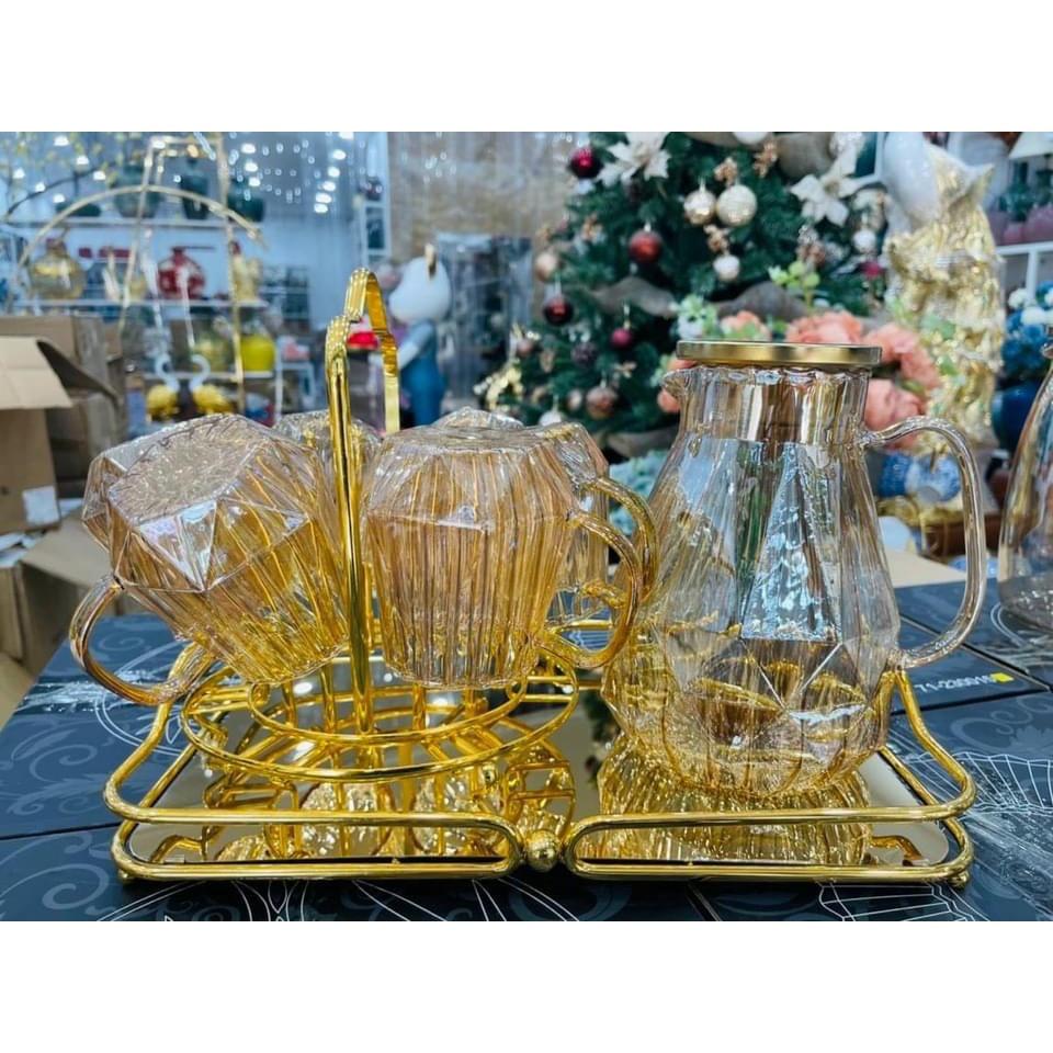 Mô tả Bộ sản phẩm: - Bộ 1 bình + 6 cốc + 1 khay xanh + 1 giá úp cốc - Bình dung tích 1800ml. Nắp inox có zoăng cao su, đảm bảo an