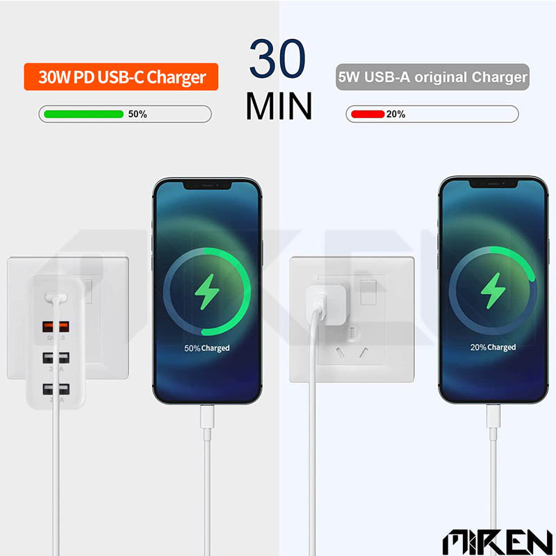 20W Mini USB Loại C PD Sạc Nhanh Đầu vào: AC 100V-240V ~ 50/60Hz,0.8A Đầu ra: 5V/3A,9V/2A,9V/2.2A,12V/1.67A,15V/1.3A 20W Max Kích thước: Khoảng 30*30*71mm Tính năng Tương Thích: Tương Thích với Apple 12 Series Mini và