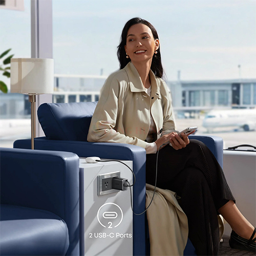 Phối màu sản phẩm sang trọng với đen và xám và điểm nhấn màu cam tinh tế. Thiết kế tối giản, phù hợp với mọi đối tượng. Trang bị 2 cổng (1 Type-C và 1