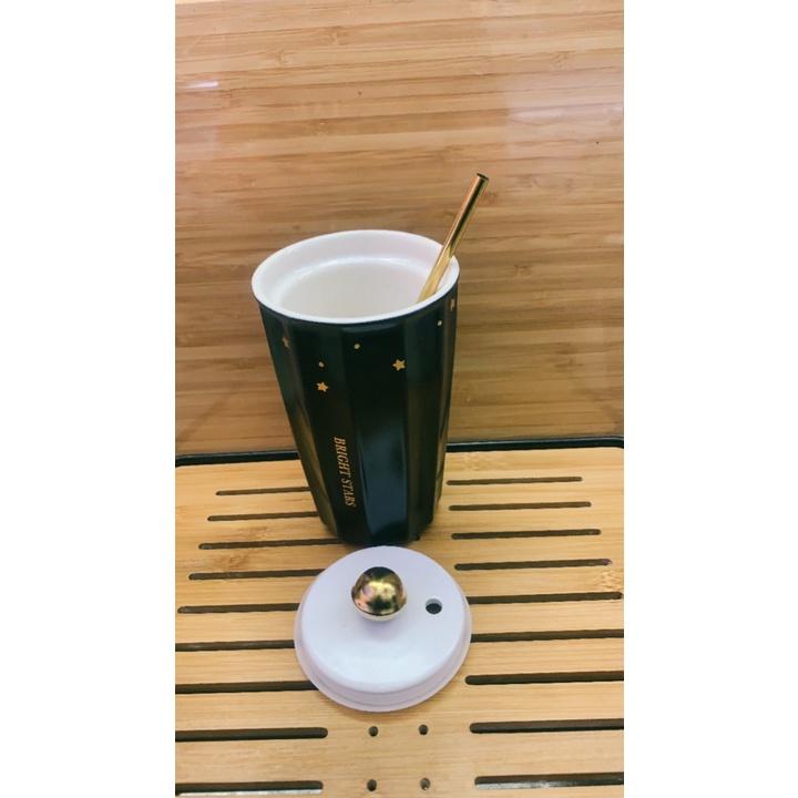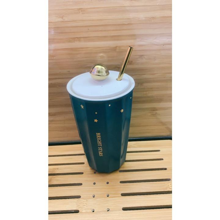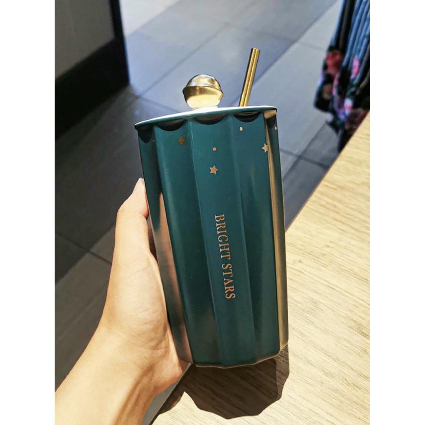 ✨CỐC UỐNG NƯỚC BẰNG SỨ VÂN SỌC KÈM ỐNG MÚT HỢP KIM CAO CẤP