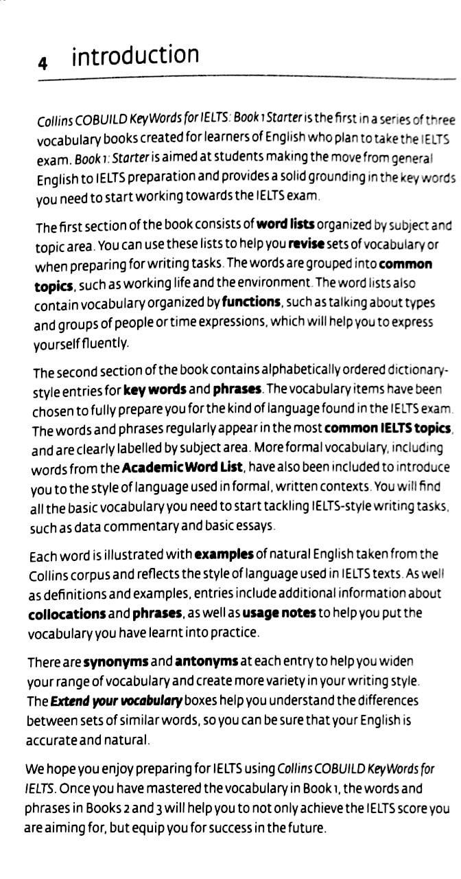 Collins Cobuild - Key Words For IELTS (Book 1: Starter) Collins Cobuild - Key Words For IELTS series is a brand-new range of three graded books which contain the essential vocabulary students need to succeed