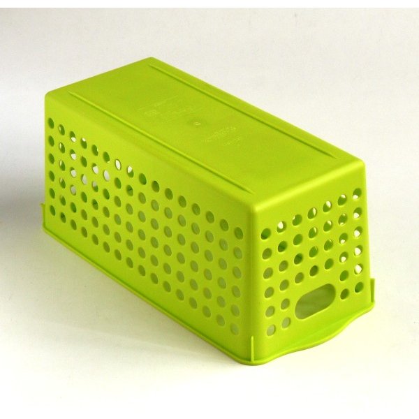 Thân rổ được thiết kế thẳng đứng với nhiều lỗ tròn thoáng khí xung quanh, tay cầm 2 bên chắc chắn, dễ dàng di chuyển linh hoạt.
