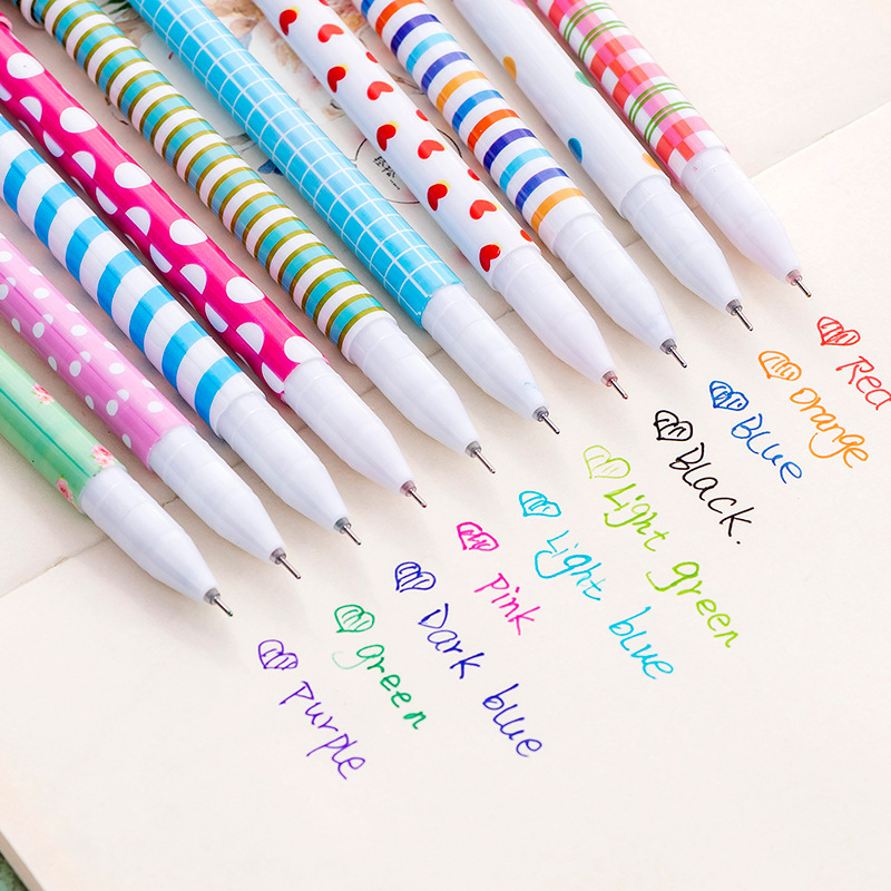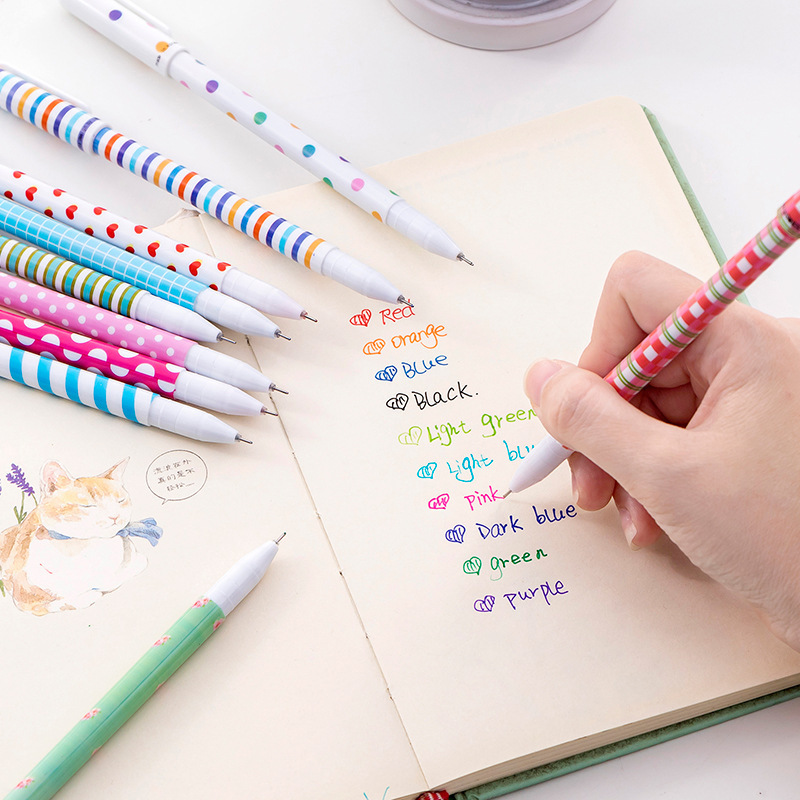 ✨Combo 10 bút mực nước gel xanh dương đậm nhạt xanh lá tím hồng cam đỏ ngân hà hoạt hình họa tiết cute