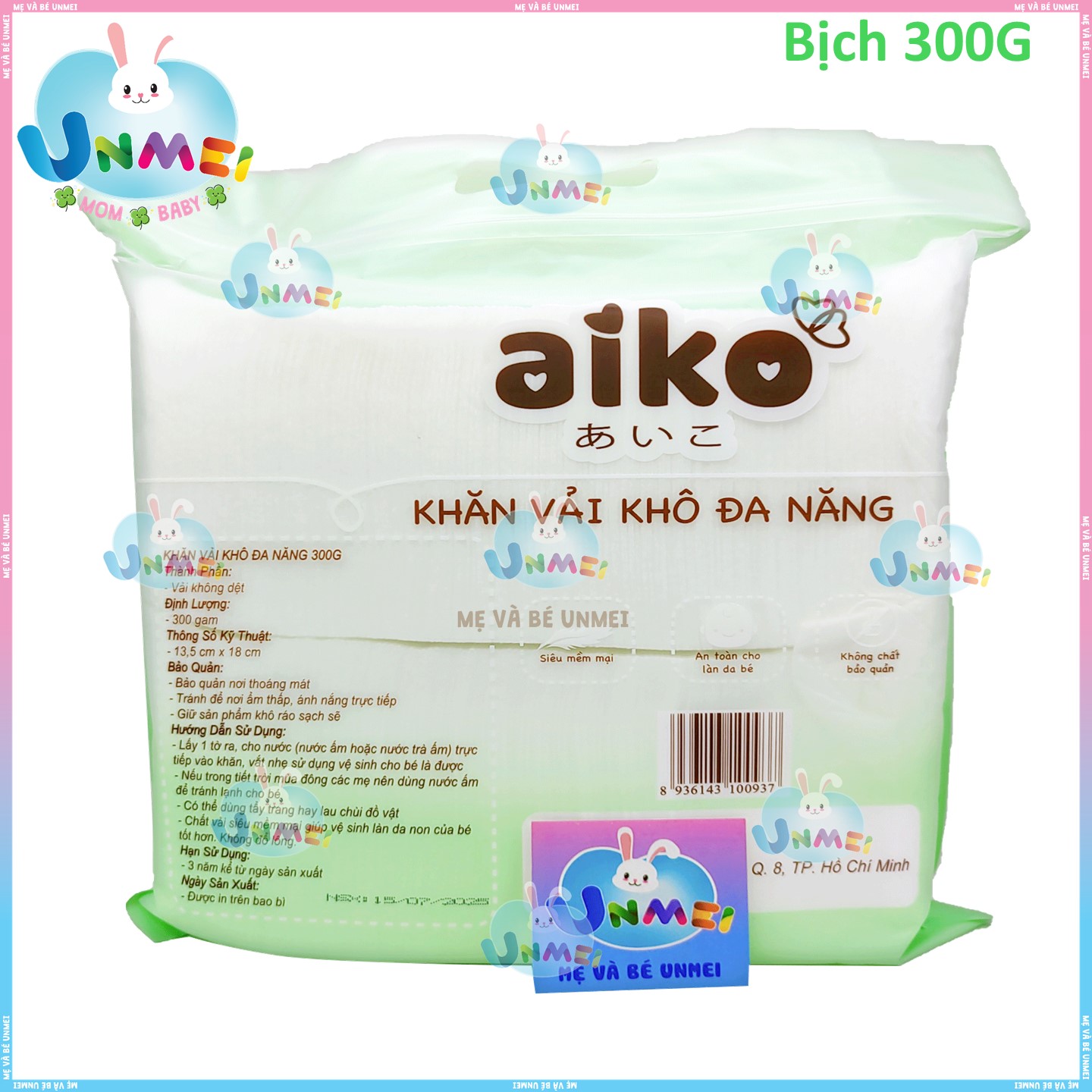 Khăn vải khô đa năng Aiko 600g siêu mềm mại, không chất bảo quản, an toàn cho bé Khăn khô đa năng Aiko 600g Brand made in Việt Nam với thiết kế thông minh, có