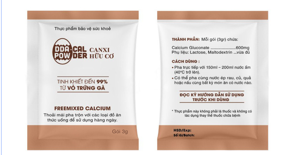Thực phẩm chức năng canxi hữu cơ DDA chiết xuất từ vỏ trứng gà tinh khiết 99.9% dạng bột hoà tan nhanh, hỗ trợ giúp hệ xương chắc khoẻ, giảm loãng xương, còi xương, tăng chiều cao và các bệnh lý thiếu...