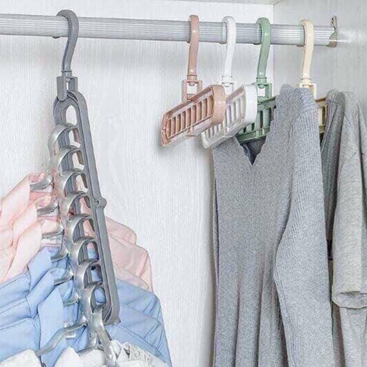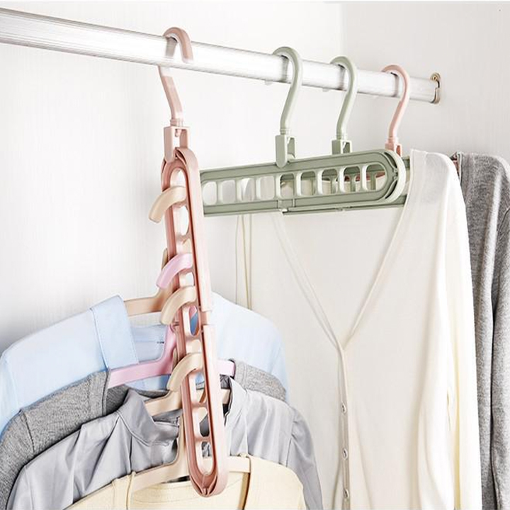 Móc treo quần áo đa năng tiện ích tiết kiệm diện tích (9 lỗ) thiết kế thông minh, tiện lợi treo được 9 móc trên 1 dàn. Treo được nhiều quần áo. Treo ngang treo dọc chỉ cần 1 động tác nhỏ.