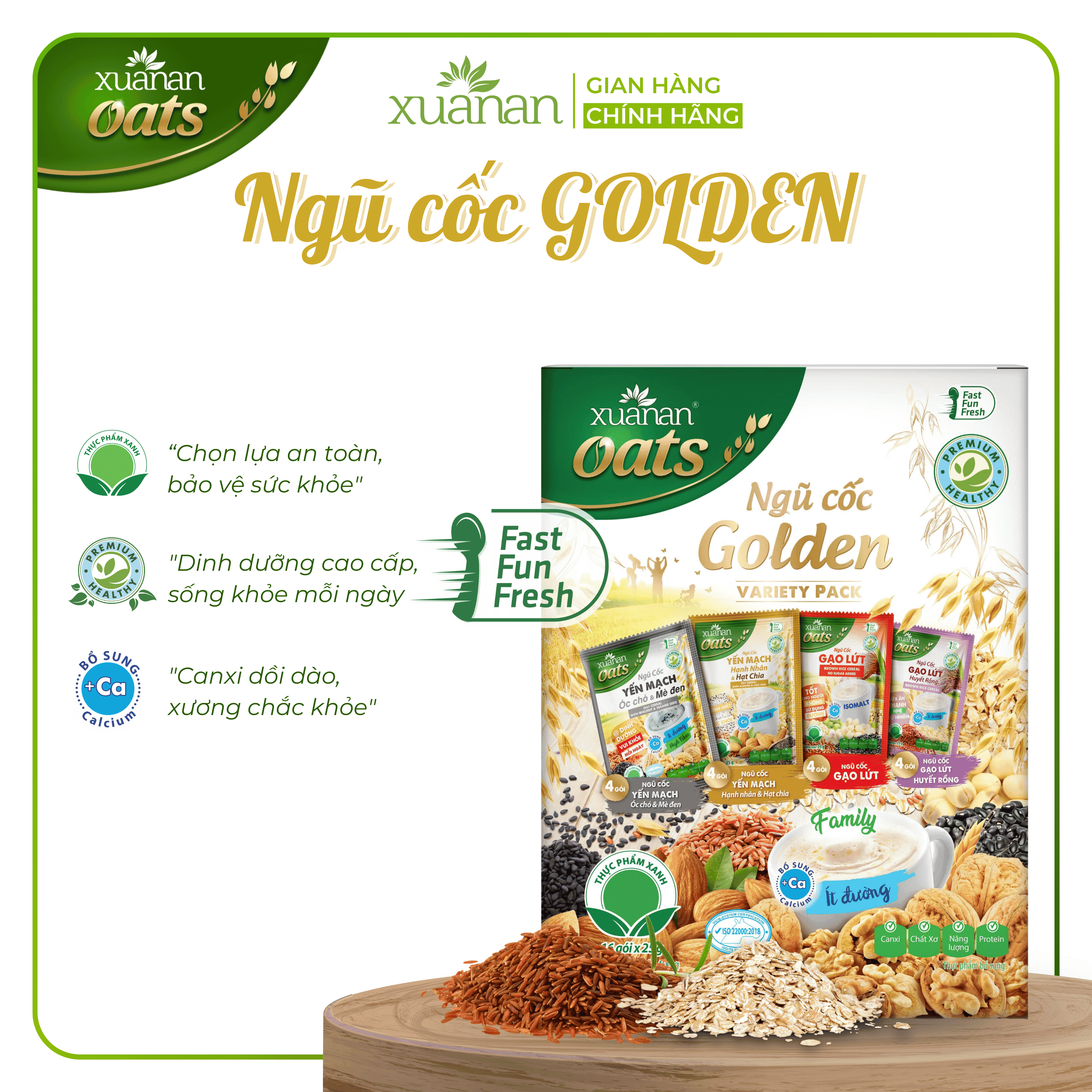 ✨Combo 11 Hộp Ngũ Cốc Golden (Variety Pack) Xuân An [ít đường] 400G {25g*16 gói}