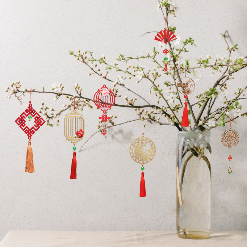 COMBO 6D – Bộ 6 phụ kiện dây treo trang trí cây mai, trang trí cây đào màu đỏ Thấy hoa mai hoa đào là thấy Tết. Tết năm nay sẽ đặc biệt hơn bao