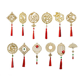 ✨Combo 12V - Bộ 12 dây treo trang trí tết Khai Lộc Hoàng Kim màu Vàng,handmade,chất liệu gỗ, kim loại cắt CNC hoa văn sắc sảo, treo cành mai, đào, lan, quà tặng độc đáo ý nghĩa