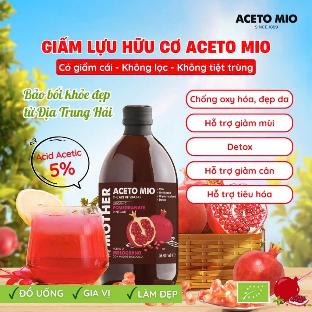 ✨Combo 2 Chai Giấm Lựu Hữu Cơ Aceto Mio (Có Giấm Cái) 500ml, Hỗ Trợ Detox Cơ Thể, Tốt Cho Sức Khỏe