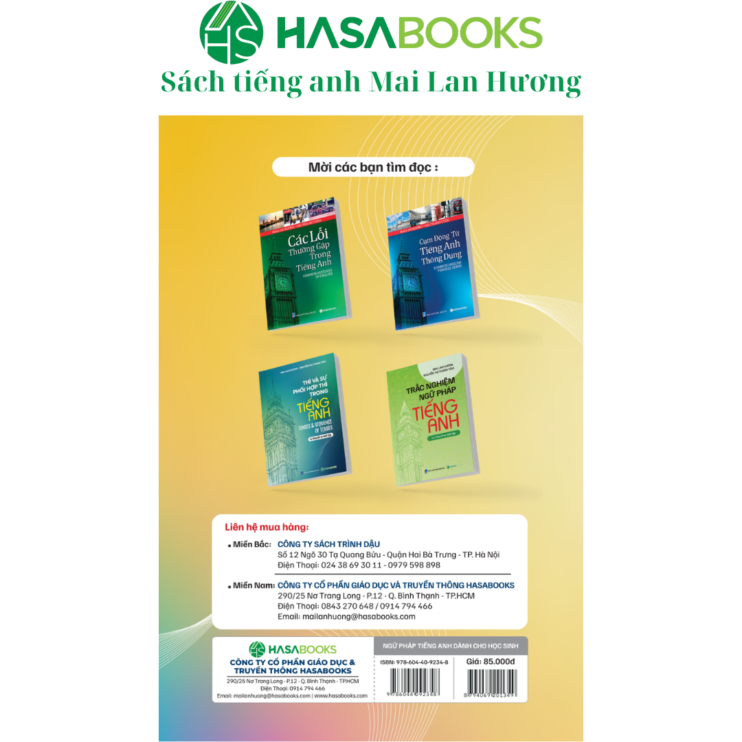 Ngữ Pháp Tiếng Anh Dành Cho Học Sinh (Lý Thuyết & Bài Tập) - HASA Ngữ Pháp Tiếng Anh Dành Cho Học Sinh (Lý Thuyết & Bài Tập) là cuốn sách ngữ pháp đã được quý