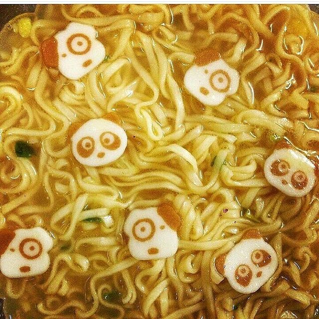 – Mì Mug màu vàng: Có hình gấu panda và cún con, sợi mì mầu vàng với hương vị hải sản.