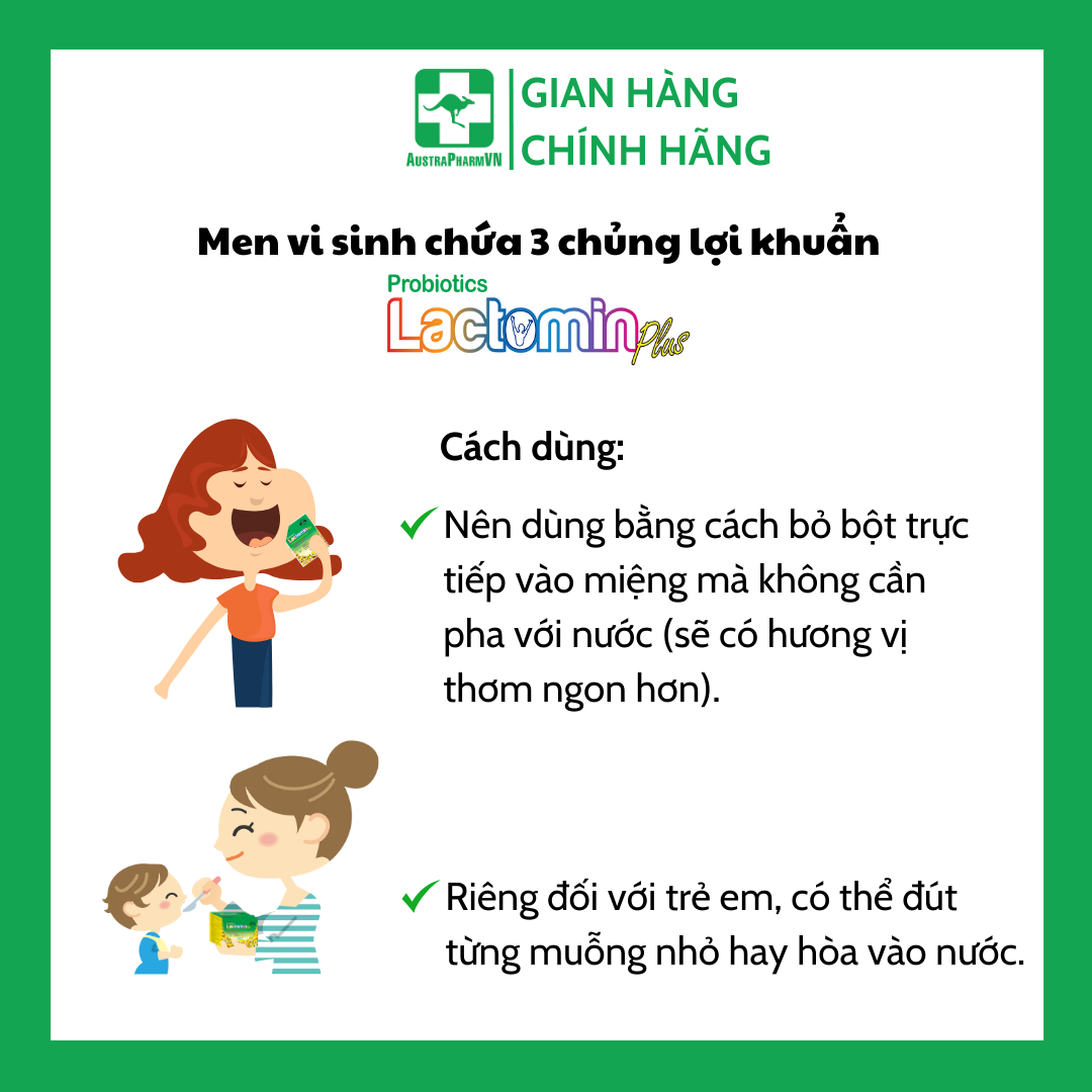 Men vi sinh LACTOMIN PLUS hộp 30 gói, nhập khẩu hoàn toàn từ Hàn Quốc, đã được lưu hành và tin dùng tại Việt Nam hơn 20 năm.
