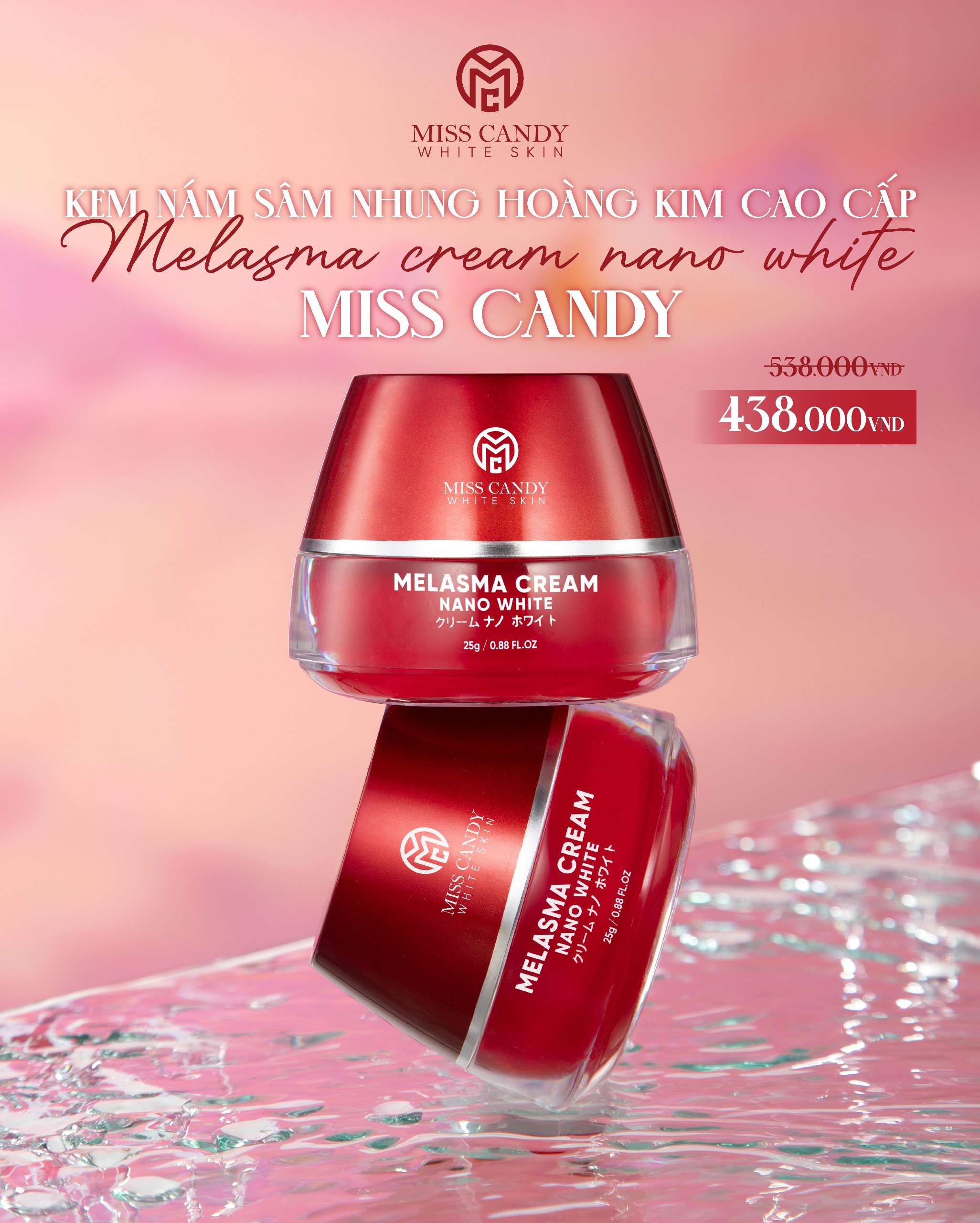 [MISS CANDY] Combo 2 Kem Dưỡng Trắng Da Mờ Thâm Nám Sâm Nhung Hoàng Kim Cao Cấp Melasma Cream Nano White MISS CANDY 25g, Giúp Tái Tạo Da Bị Nhiễm Corticoid, Phục Hồi Làn Da