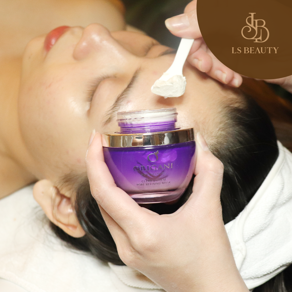 Nhằm hạn chế lỗ chân lông bị giãn nở to sau khi lấy mụn, cũng như tình trạng sưng của các nốt mụn viêm, kỹ thuật viên sẽ dùng máy điện di làm sạch bề mặt da. Theo sau đó là mặt nạ đất sét hữu cơ – dòng sản phẩm cho da nhạy cảm/dầu mụn – Dermassure Pore Refining Mask của Origani – làm dịu làn da vừa bị tổn thương bởi quá trình lấy mụn một cách nhẹ nhàng nhất.