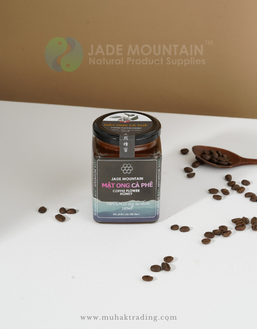 - Mật ong hoa cà phê Jade Mountain là mật ong chín tự nhiên, được vắt trực tiếp từ tổ, mật được lấy từ hoa Cà phê bởi những chú ong Apis Mellifera.