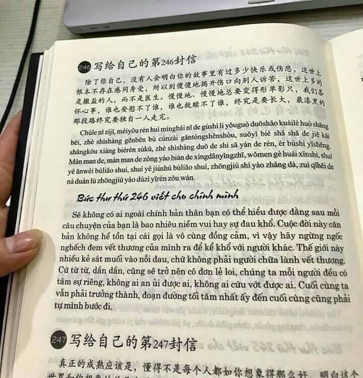 Mua tại Tiktok- Giới thiệu sách: 999 Bức Thư Viết Cho Chính mình (Song Ngữ Trung Việt Có Phiên Âm) - (Bản dịch chuẩn và đầy đủ) Tác giả: Nhật Phạm Số trang: 509 Năm phát hành: 2021 Công ty phát hành: Tuệ Lâm Linh Nhà xuất bản Hồng Đức Với nền văn hóa lâu đời đặc sắc và vô cùng phong phú của Trung Quốc, ngôn ngữ Trung trở thành một ngôn ngữ được nhiều bạn trẻ trên thế giới yêu thích, trong đó có Việt Nam. Những cuốn sách song ngữ có phiên âm mang màu sắc hạt giống tâm hồn vừa giúp người học tiếng Trung nâng cao thêm vốn từ vựng, cách diễn đạt, vừa giúp họ làm mát tinh thần, chiêm nghiệm được nhiều triết lí sống chưa được ấn hành nhiều ở Việt Nam. Với mong muốn giúp những bạn trẻ yêu thích tiếng Trung nhưng trình độ chưa cao có thể tiếp cận được với những triết lí của cuộc sống cũng như phát triển được ngôn ngữ, chúng tôi xin được giới thiệu cuốn sách 999 bức thư viết cho chính bạn với phiên bản đầy đủ chữ Hán, phiên âm, tiếng Việt. Hi vọng rằng cuốn sách mà chúng tôi ví như một chai nước dành cho những kẻ bộ hành giữa sa mạc sẽ giúp ích được cho nhiều người trẻ có thêm nhiều năng lượng, động lực, sự tự tin để bước về phía trước. Các bạn đọc đi, tin tôi đi, các bạn có thể không cần một đôi giày xịn, một chiếc áo đẹp, nhưng cuốn sách này thì nên có, sẽ là báu vậtgối đầu giường của các bạn học tiếng Trung. Bức thư số 1 viết gửi bản thân: Bắt đầu từ ngày hôm nay, mỗi ngày đều phải mỉm cười, trên đời này, ngoài cái chết, tất cả chỉ đều là chuyện nhỏ. Cho dù có gặp phải chuyện buồn gì, cũng đừng tự làm khó bản thân; mặc cho ngày hôm nay có bao điều tồi tệ xảy ra, cũng đừng cảm thấy đau buồn. Ngày hôm nay là ngày bạn trẻ tuổi nhất trong tất cả những chuỗi ngày sau này, bởi vì còn có ngày mai, cho nên hôm nay mãi mãi vẫn chỉ là điểm xuất phát. 写给自己的第1封信 从今天开始,每天微笑吧,世上除了生死,都是小事。不管遇到了什么烦心事,都不要自己为难自己;无论今天发生多么糟糕的事,都不应该感到悲伤。今天是你往后日子里最年轻的一天了,因为有明天,今天永远只是起跑线。