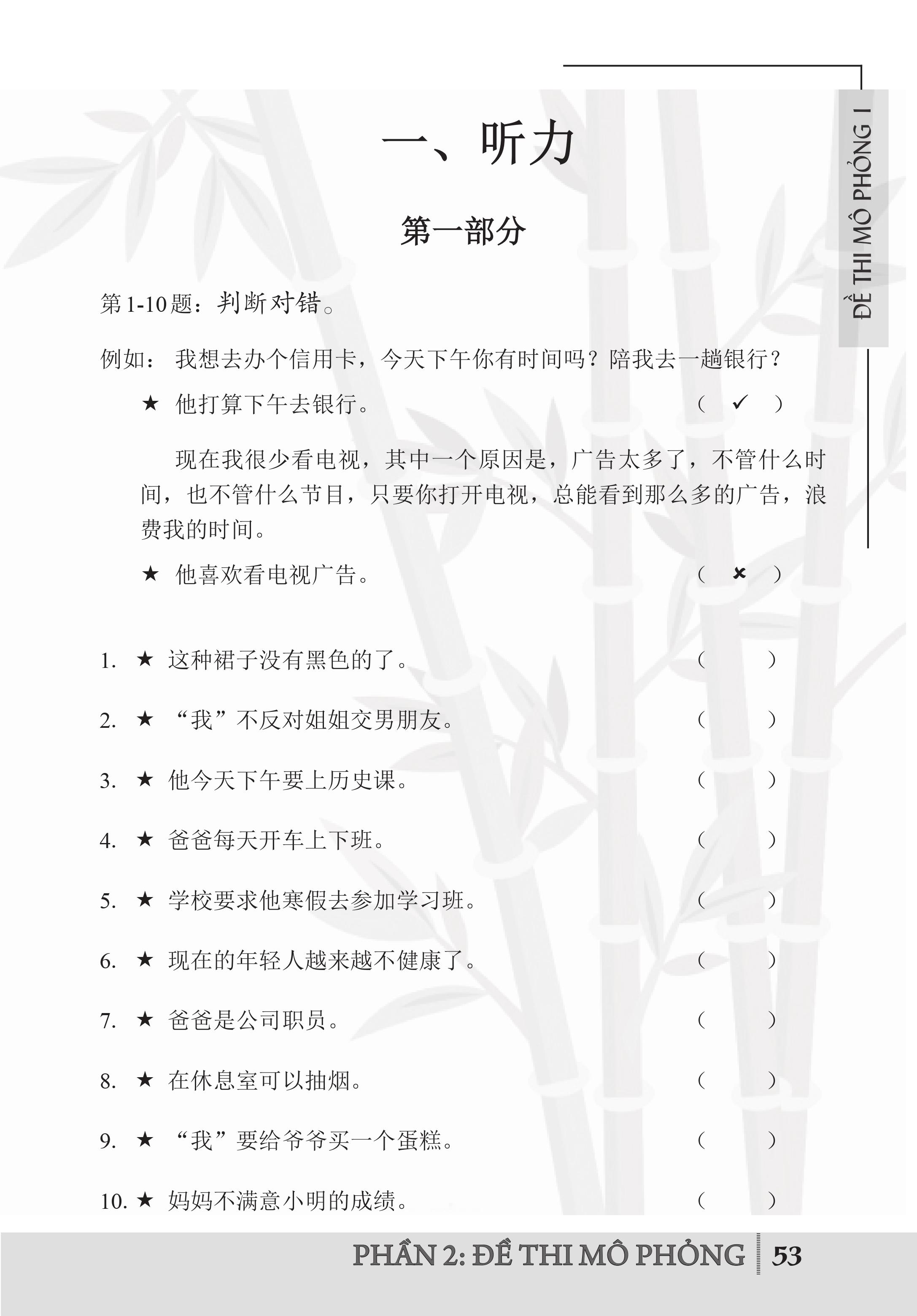 • Phần 2: Đề thi mô phỏng (cung cấp 12 đề thi mô phỏng HSK cấp 4)