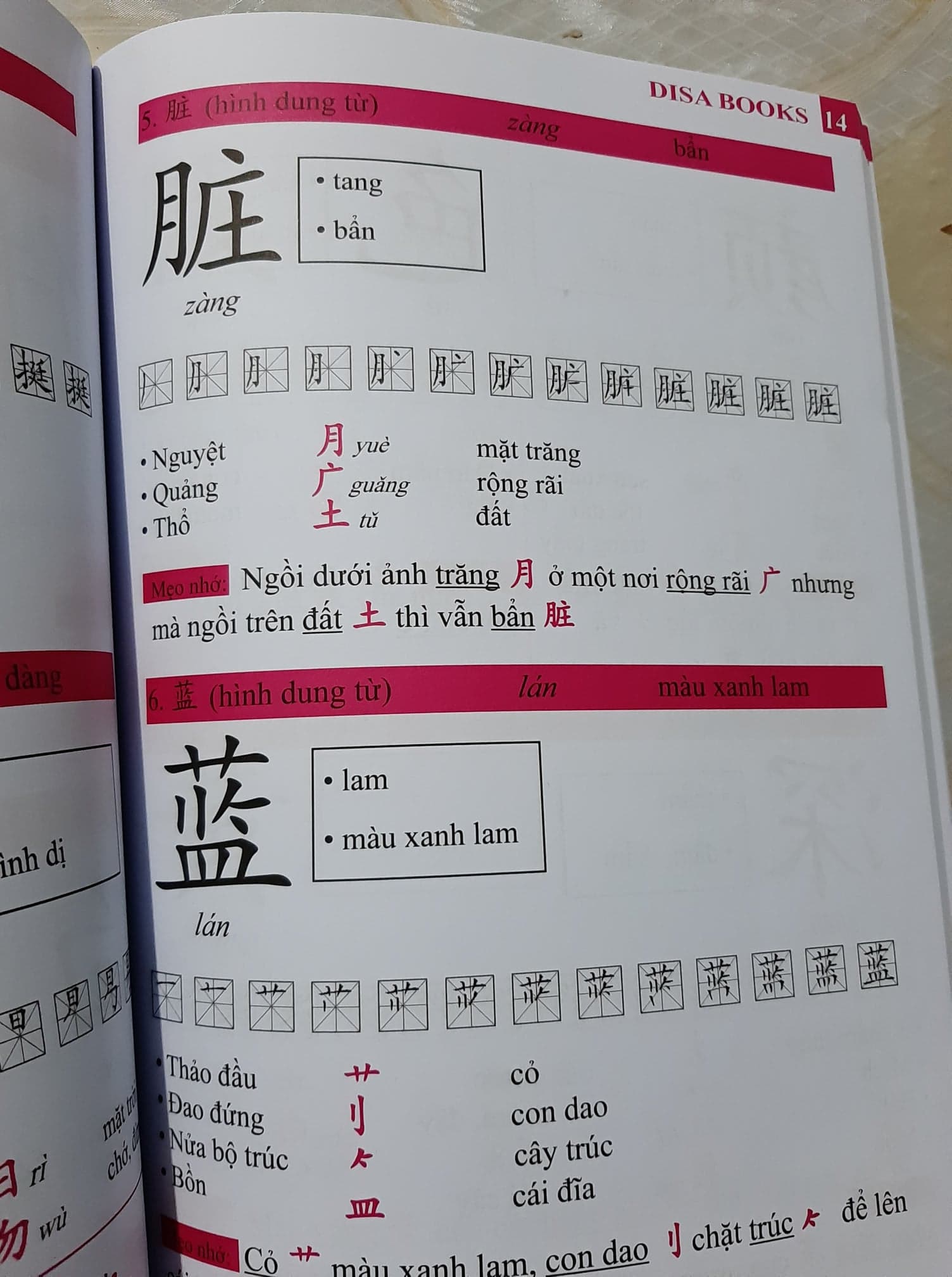 - Siêu trí nhớ chữ Hán tập 01 (In màu, có Audio nghe) Nội dung sách: Giúp bạn dễ dàng nhớ ngay 1000 chữ Hán chỉ sau 2 tháng thông qua mẹo nhớ và hình ảnh dễ hiểu. Tác giả: Diệu Hồ – Phạm Thành Luân Số trang: 250 Năm xuất bản: 2019 Nhà Xuất Bản: Đà Nẵng Cách nhớ chữ Trung Quốc (chữ Hán) a. Nhớ chữ Hán bằng các bộ thủ Bộ thủ chính là cách nhớ chữ Hán hiệu quả , mỗi bộ thủ trong tiếng Hán lại biểu hiện một hiện tượng sự vật riêng. Nhớ được các bộ thủ đó chính là đã nhớ cách viết tiếng Trung như thế nào. Và việc còn lại chính là ghép các bộ thủ đó với nhau để tạo nên được một chữ hoàn chỉnh. vd: chữ 安 Ở trên là bộ 宀 miên => mái nhà mái che, Ở dưới là bộ女 nữ => nữ giới, con gái, đàn bà. Người phụ nữ ở dưới trong nhà thì rất “an” toàn. Ví dụ: 安全 (Ānquán) – An Toàn. Mẹo nhỏ cho những người mới học viết tiếng Trung có thể nhớ đó là dùng các mảnh giấy nhớ, ghi lại những bộ thủ hay những từ mới bằng việc tập viết tiếng Trung. Để những mảnh giấy nhớ đó ở những nơi dễ thấy. Việc nhìn liên tục đó sẽ giúp bạn vừa có thể nhớ chữ vừa có thể nhớ từ. b. Cách nhớ chữ Hán qua thơ Các từ chữ Hán được học bằng cách gieo vần nhịp để người học nhớ chữ Hán dễ hơn như: “Chim chích mà đậu cành tre Thập trên tứ dưới đè chữ tâm” (Chữ Đức) Hay: “Tai nghe miệng nói đít làm vua”. (Chữ Thánh) Nhớ chữ Hán bằng cách vẽ lại những từ đấy. Nhớ các nét, mô phỏng lại và vẽ, đây là một trong những cách rất tốt để nhớ chữ Hán Chữ Hán có hai cách viết là giản thể và phồn thể. Đa phần các giáo trình tiếng Trung đều là chữ giản thể do đó rất nhiều trường hợp đã gặp lúng túng khi tiếp xúc với chữ phồn thể. Nếu để ý thì cách chữ phồn thể có cách viết chỉ khác chữ giản thể một chút. Trong quá trình học, đừng ngần ngại mà nhờ giáo viên chỉ hướng dẫn cách viết chữ phồn thể (viết tiếng trung) nếu công việc của bạn phải tiếp xúc với kiểu chữ này.
