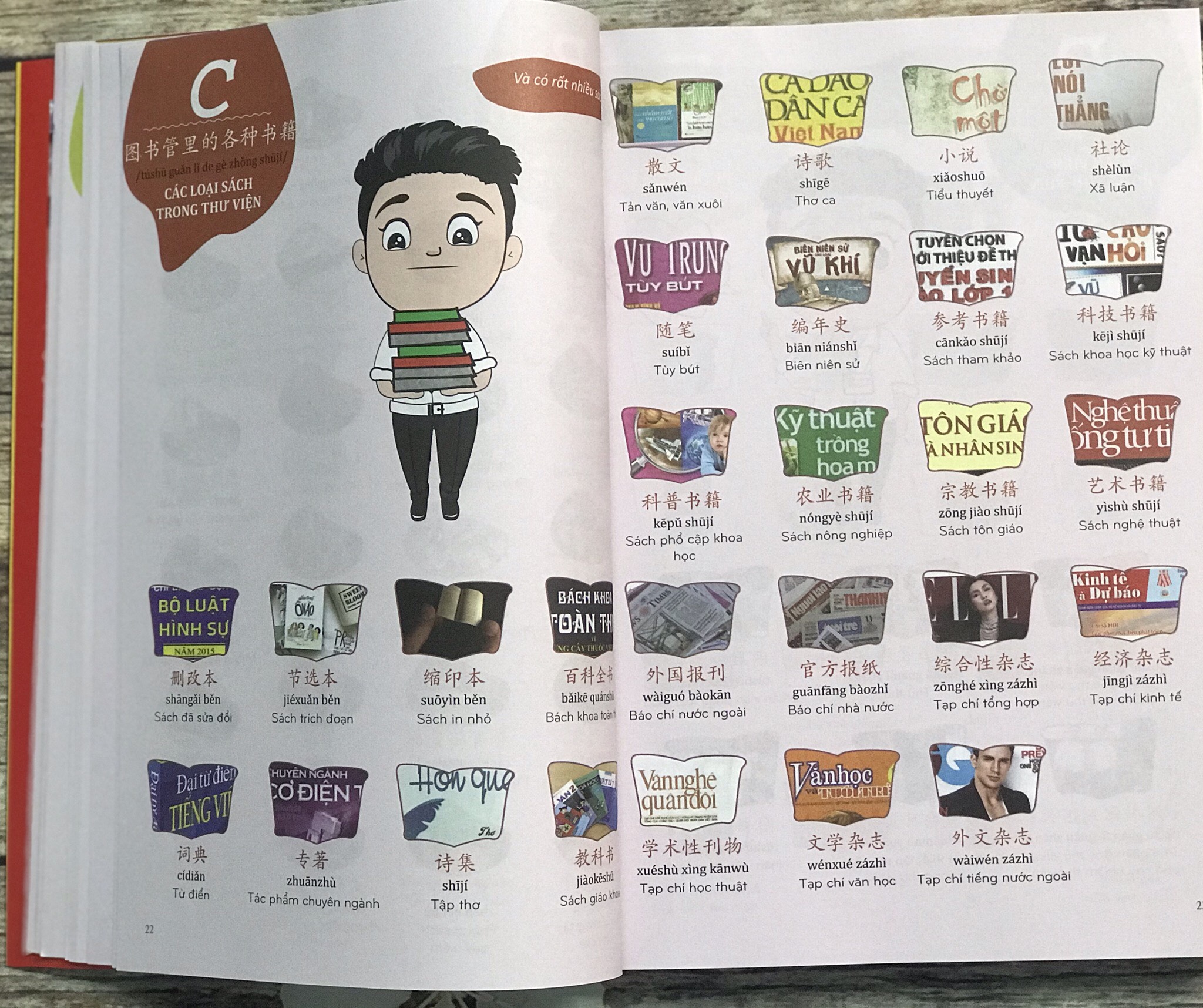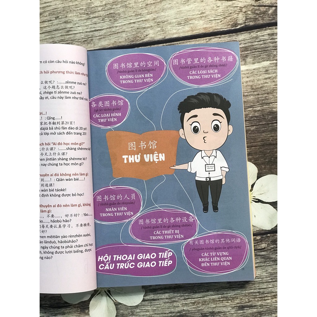 - Cuối cùng các hành động ở trên tạo ra kết quả ra sao, bạn và mọi người cảm thấy thế nà Là chúng ta sẽ có nhau nhóm TÍNH TỪ Thật tuyệt vời, từ 3 nhóm từ trên là chúng ta đã có ngay đầy đủ 3 nhóm từ chính và nhanh tay ghép vào các cấu trúc ngữ pháp để tạo thành câu hoàn chỉnh. Với mỗi chủ đề bạn sẽ lần lượt liệt kê ra các DANH TỪ, các ĐỘNG TỪ, các TÍNH TỪ liên quan được miêu tả sinh động và cực kỳ chi tiết qua hình ảnh chân thực. Tiếp đó sẽ có phát triển học thêm các PHÓ TỪ và TRẠNG TỪ qua các đoạn hội thoại mẫu mang tính ứng dụng cực kỳ cao giúp bạn sau này dễ dàng hơn rất nhiều trong việc học ngữ pháp đó nha. Cuốn sách này gồm 20 chủ đề thông dụng nhất trong đời sống với tổng cộng gần 5000 từ vựng khác nhau được miêu tả chi tiết qua hình ảnh và lồng ghép trong hội thoại. Các chủ đề bao gồm: Trường hoc, thư viện, nhà bếp, công viên, quán ăn, khách sạn, chợ và siêu thị, công ty, bệnh viện, nhà ga và bến xe, sân bay, quán cafe, phòng tắm và nhà vệ sinh, tiệm mát xa, cửa hàng điện thoại, rạp chiếu phim, nhà thi đấu thể thao, cửa hàng mỹ phẩm, cửa hàng thời trang. Ngoài từ vựng sách còn đưa thêm rất nhiều ví dụ giao tiếp và cấu trúc liên quan trực tiếp đến từng chủ đề để bạn dễ dàng bổ sung kiến thức liên quan trong quá trình tự học mà không cần phải tra các sách từ điển ngữ pháp khô khan!