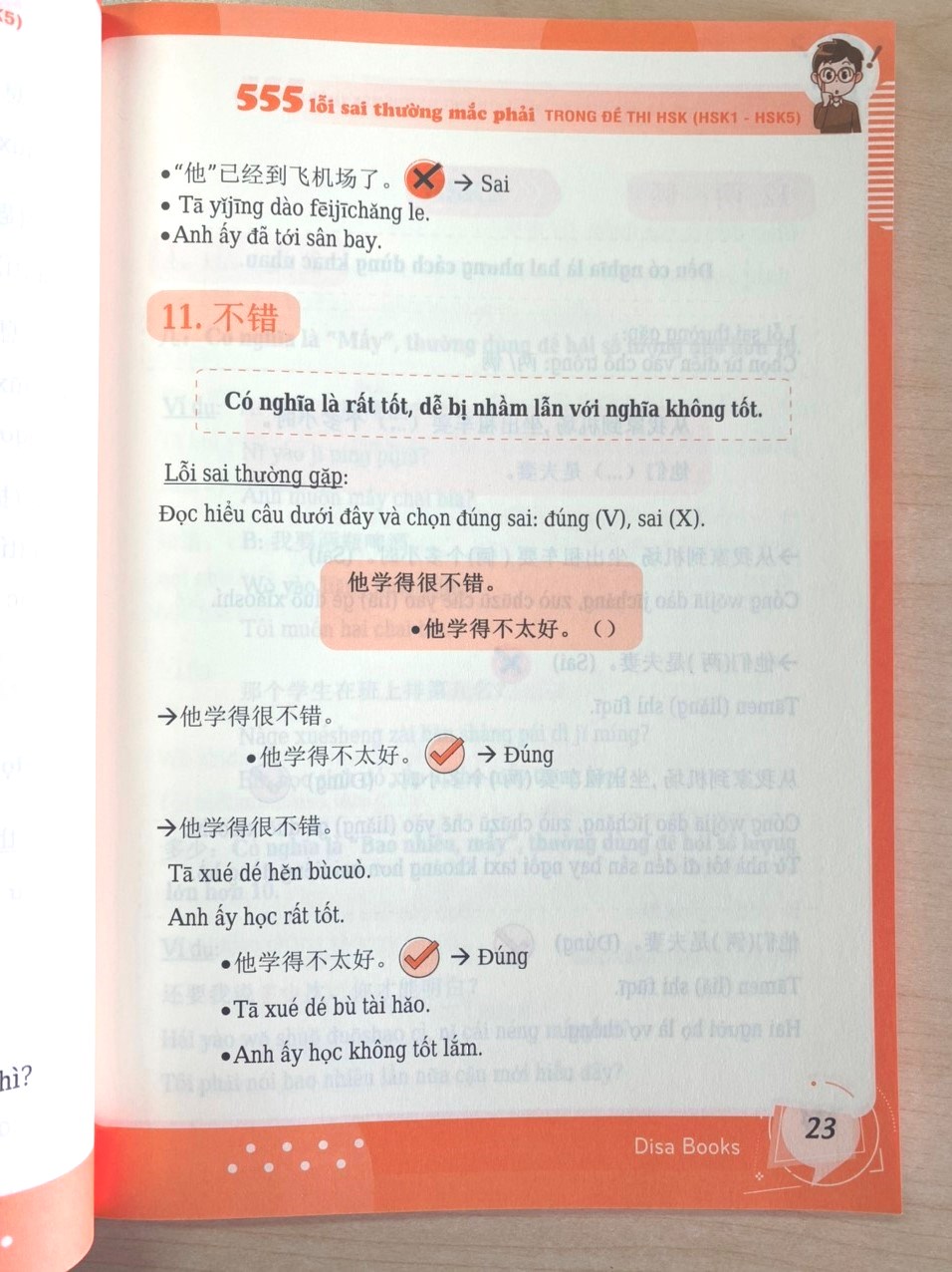 Cuốn sách 555 lỗi sai thường mắc phải trong đề thi HSK được biên soạn dựa trên nỗi thấu hiểu mà nhiều người trong chúng ta hay mắc phải khi ôn tập các cấp thi từ HSK1 đến HSK5 nhằm giúp các bạn có thể nắm bắt những điểm quan trọng trong đề thi HSK và tiến hành ôn thi một cách khoa học, đạt hiểu quả tốt nhất.