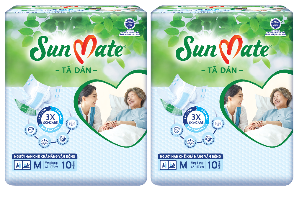 - Với công nghệ tiên tiến nhất tạo ra các sản phẩm mềm mại, thoáng khí, khả năng kháng khuẩn, nhằm giảm thiểu sự phát triển mùi và thấm hút cực nhanh, SunMate là lựa chọn tối ưu cho việc chăm sóc vệ sinh người cao tuổi, giúp họ luôn thoải mái, an toàn tự tin vui sống mỗi ngày. SunMate là người bạn đồng hành giúp chăm sóc người thân yêu tốt nhất.
