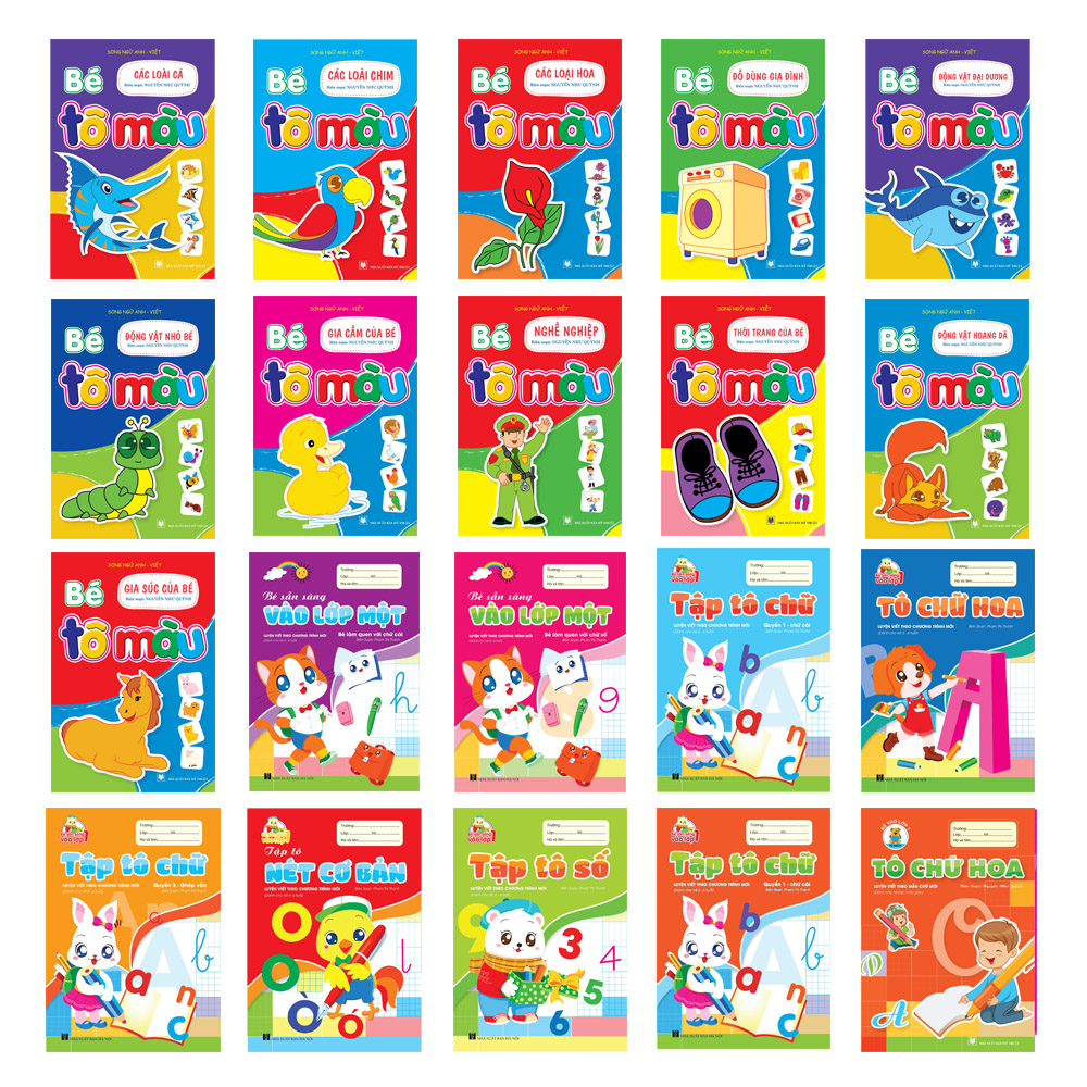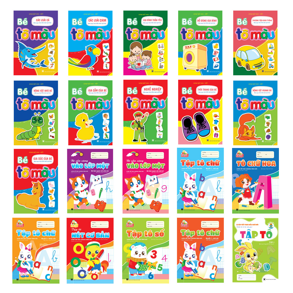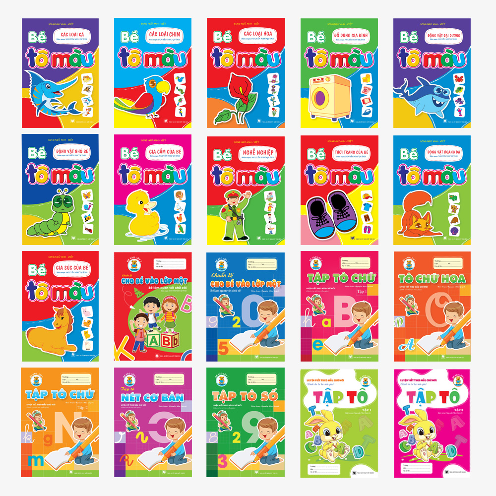 Nhằm tạo điều kiện tối đa cho các bé chuẩn bị vào lớp 1, Tuan Viet Books xin trân trọng giới thiệu bộ Combo 20 cuốn "Tập tô - Tập viết - Làm quen chữ cái/chữ số - Tô màu" vừa giúp bé làm quen chuẩn bị với những hành trang mới vào lớp 1, vừa giúp bé có thời gian thư giãn thoải mái với những bộ màu vẽ.