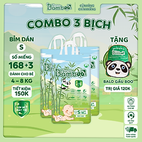✨COMBO 3 Bịch tã/bỉm Dán Nano Bamboo sợi tre NB1 / S / M (168 miếng+6) tiết kiệm 150k kèm quà tặng